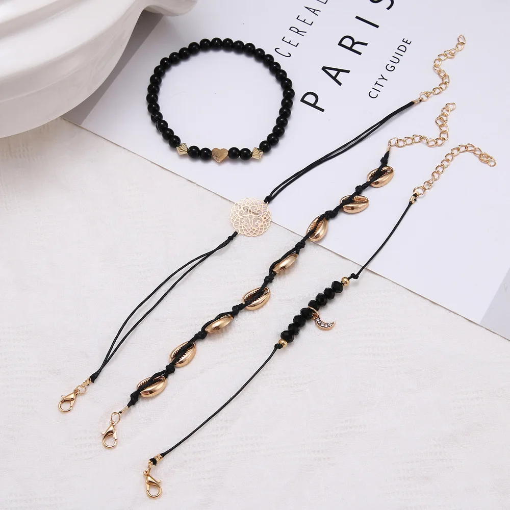 Новый богемный черный браслет-цепочка из веревки для женщин, самолёт, ракушки, луна, сердце, стиль бохо, ювелирные изделия, подарки