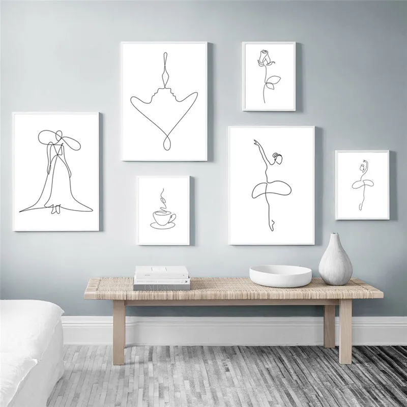 Абстрактная одна линия художественная фигурка холст живопись абстрактный танцор настенная живопись минималистичный современный плакат и печать домашний декор