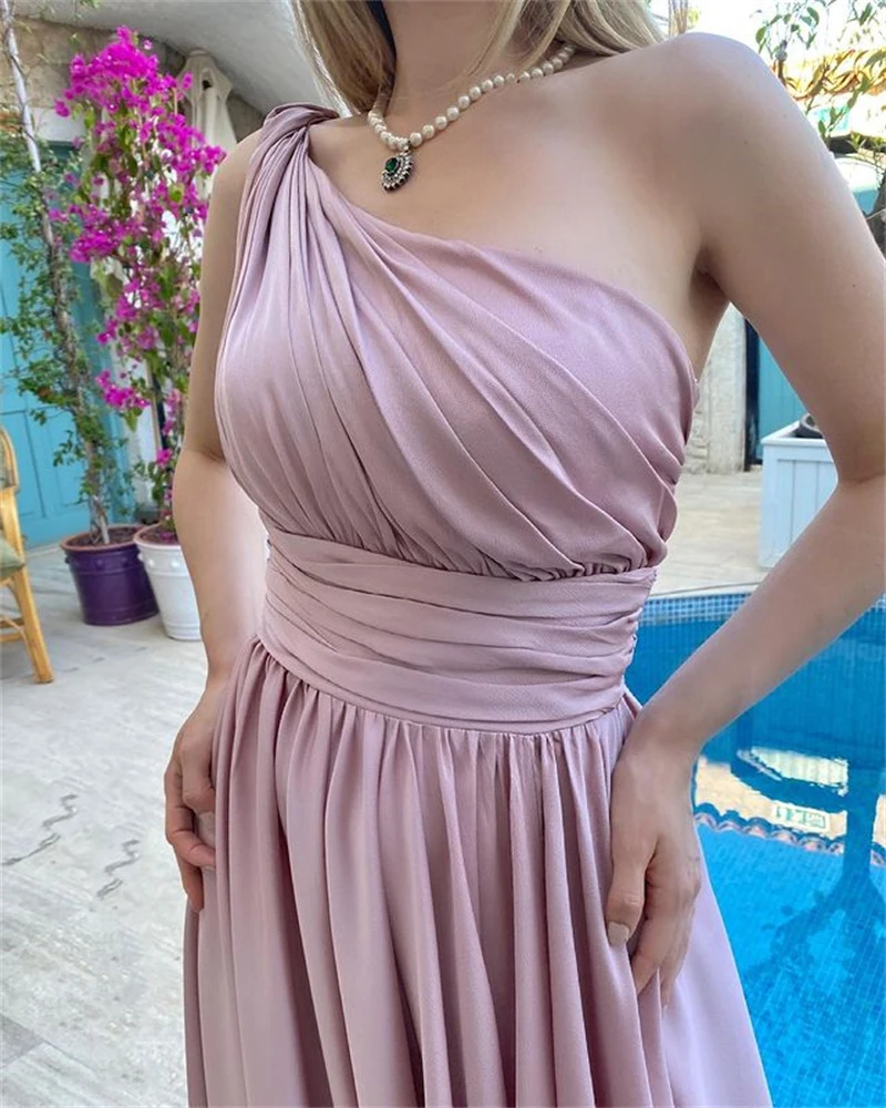 Платье женское на одно плечо, шифоновое вечернее ТРАПЕЦИЕВИДНОЕ, с ...