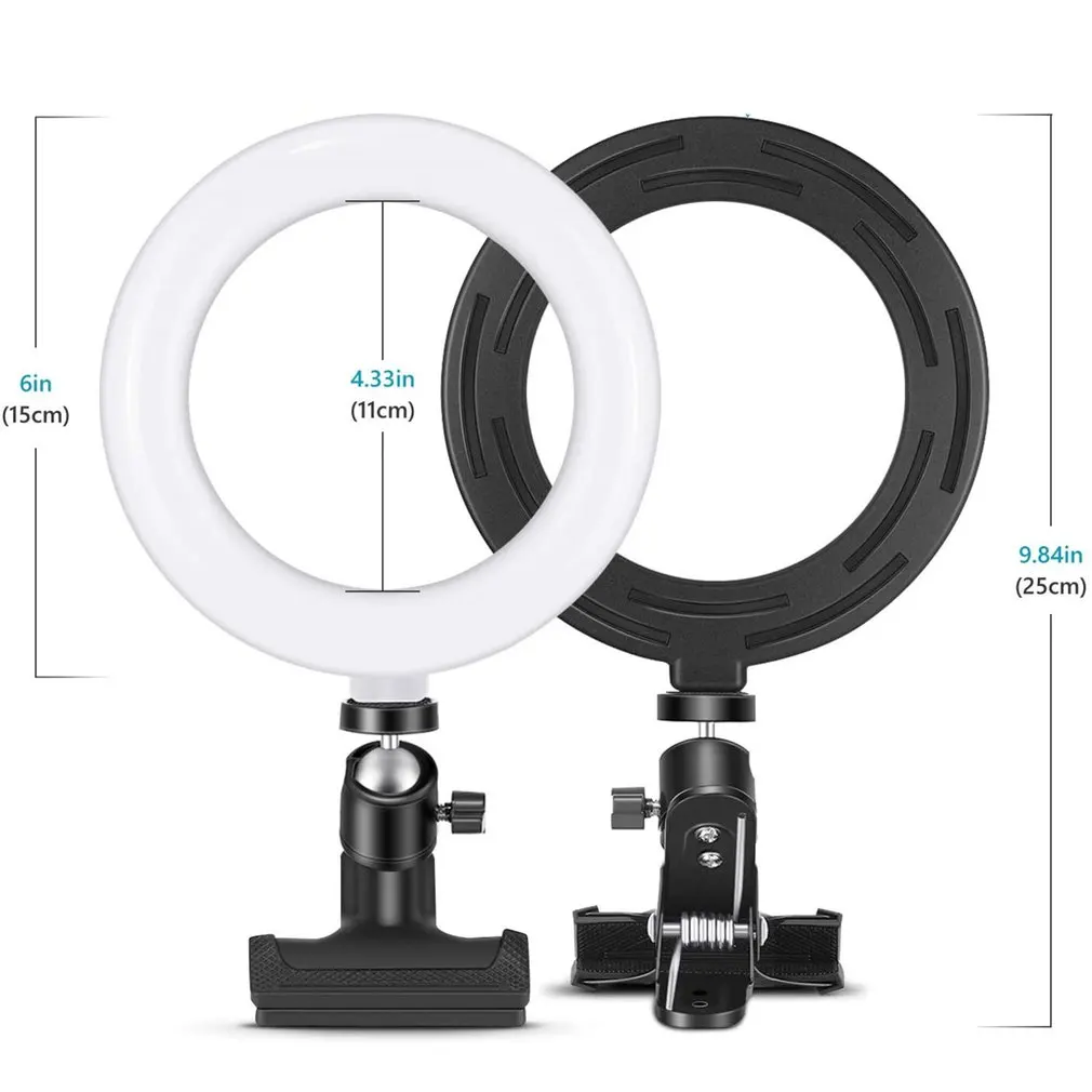 1. Кольцевая лампа с монтажным зажимом: компактный комплект из 6 дюймов дизайн с устойчивым к царапинам монтажный зажим оснащен толстые силиконовые подушки, позволяет установить кольцо света на ваш ноутбук, компьютер, даже стол, кровать, стол для конференций. Зажим обеспечивает сбалансированный светодиодный светильник, даже если вы просто поместите его на стол.