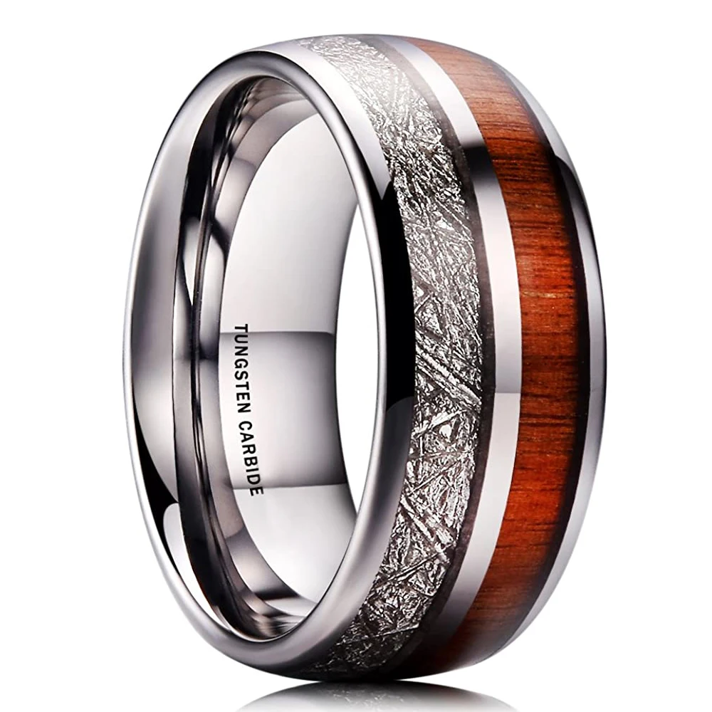 Модное мужское Золотое кольцо 8 мм из нержавеющей стали, гавайский КоА из дерева и метеорита, инкрустированное куполом, обручальное мужское кольцо, мужской обручальный браслет