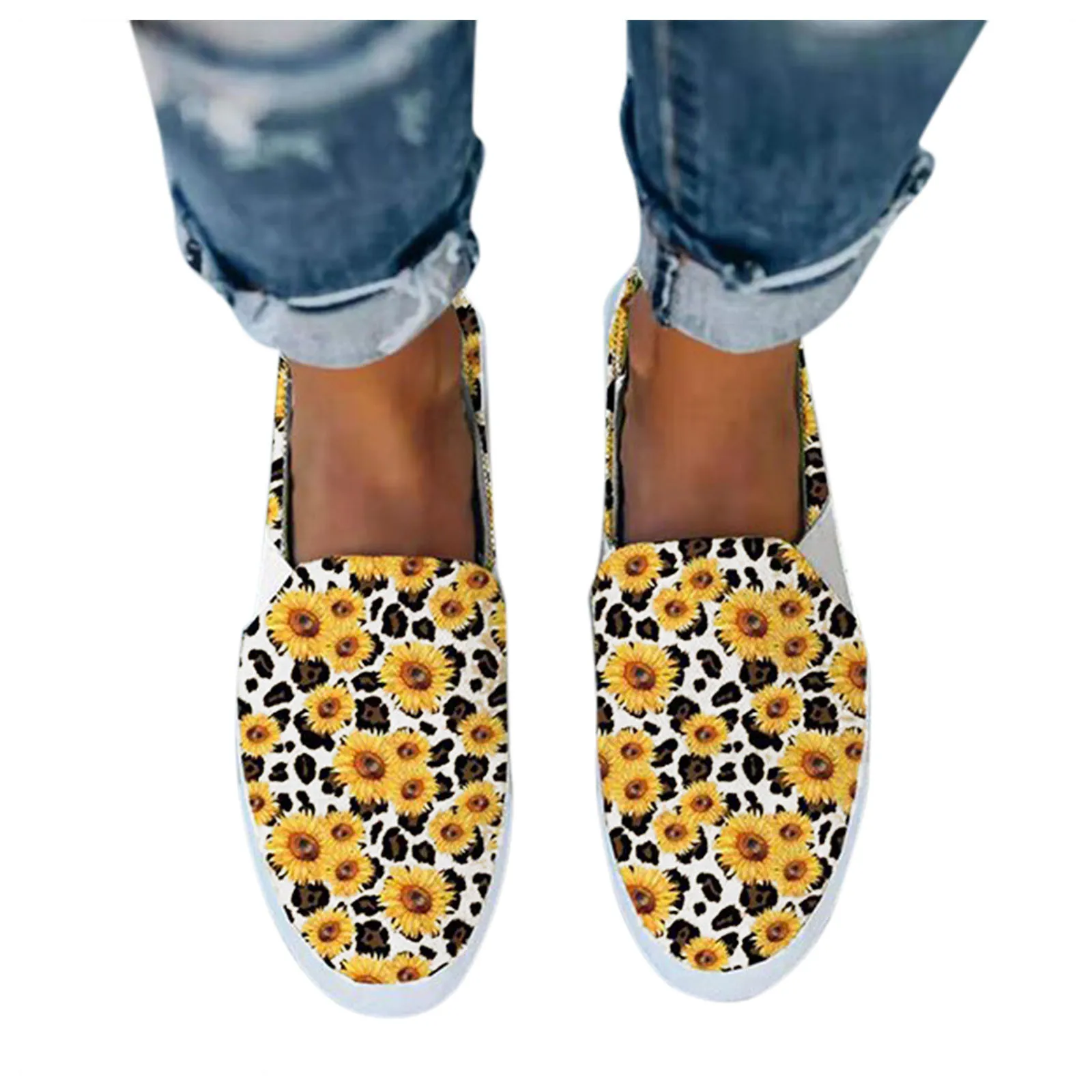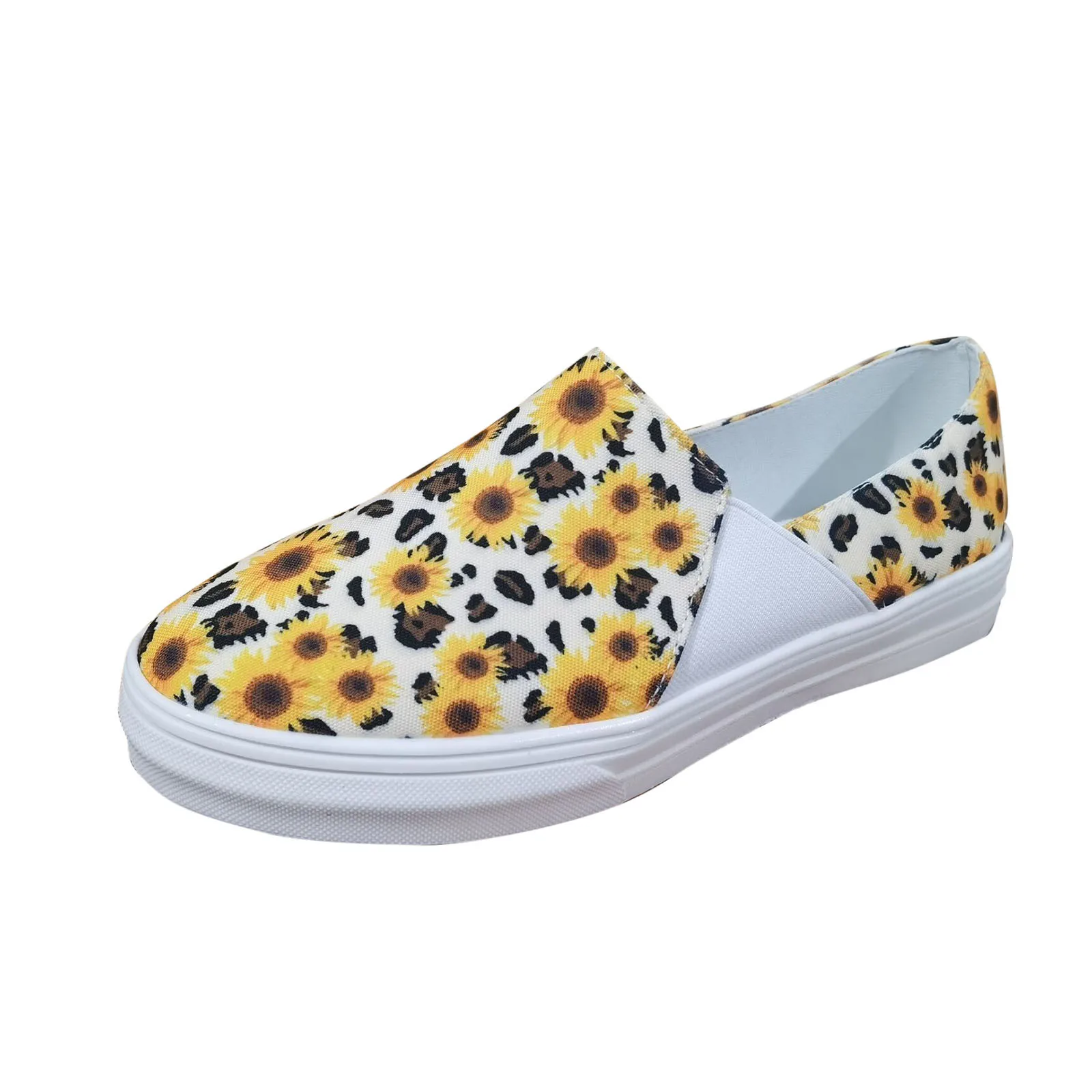 2021 Осенняя женская обувь на плоской подошве, искусственная кожа; Парусина; Женские ботинки-гладиаторы леопардовой расцветки с принтом в виде подсолнухов; Повседневные пляжные офисные вечерние кроссовки