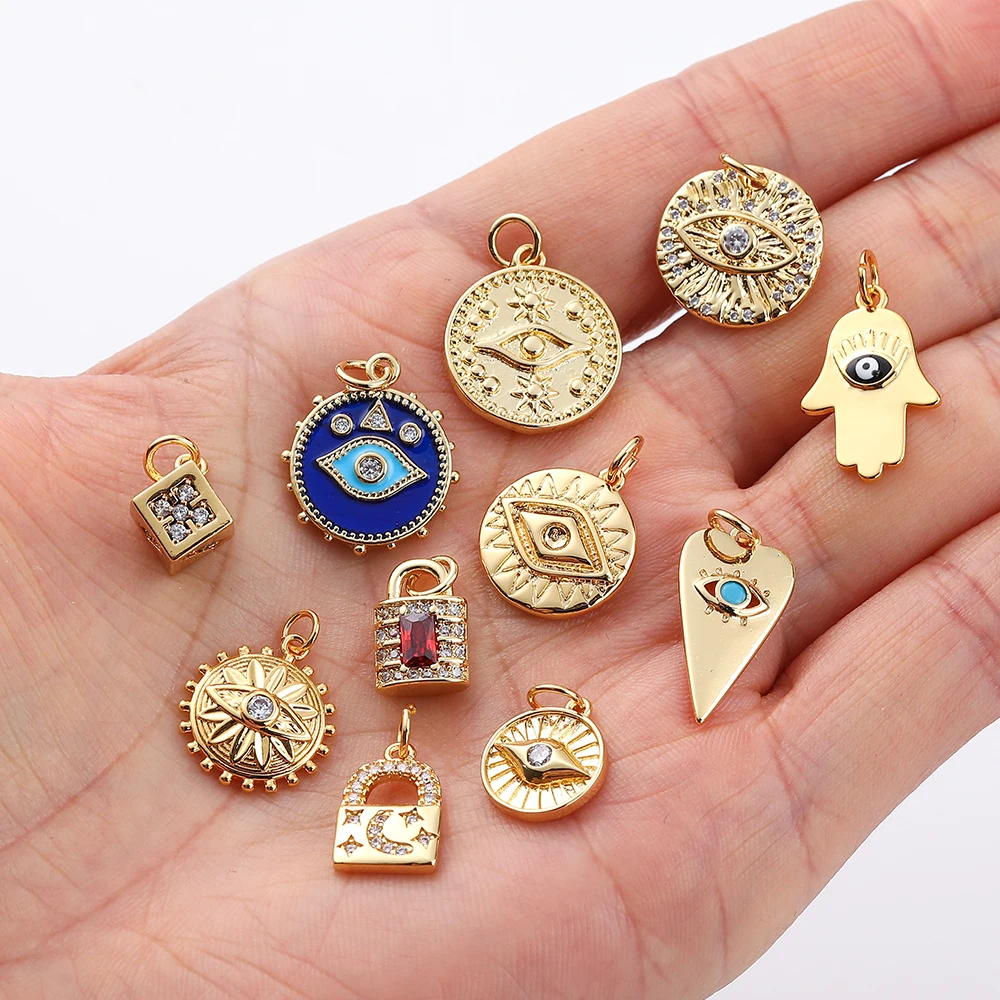 Амулет в виде Глаза Подвески для изготовления ювелирных изделий, золотой замок, подвеска сделай сам, дизайнерская монета, подвеска, ожерелье, браслет, медный CZ