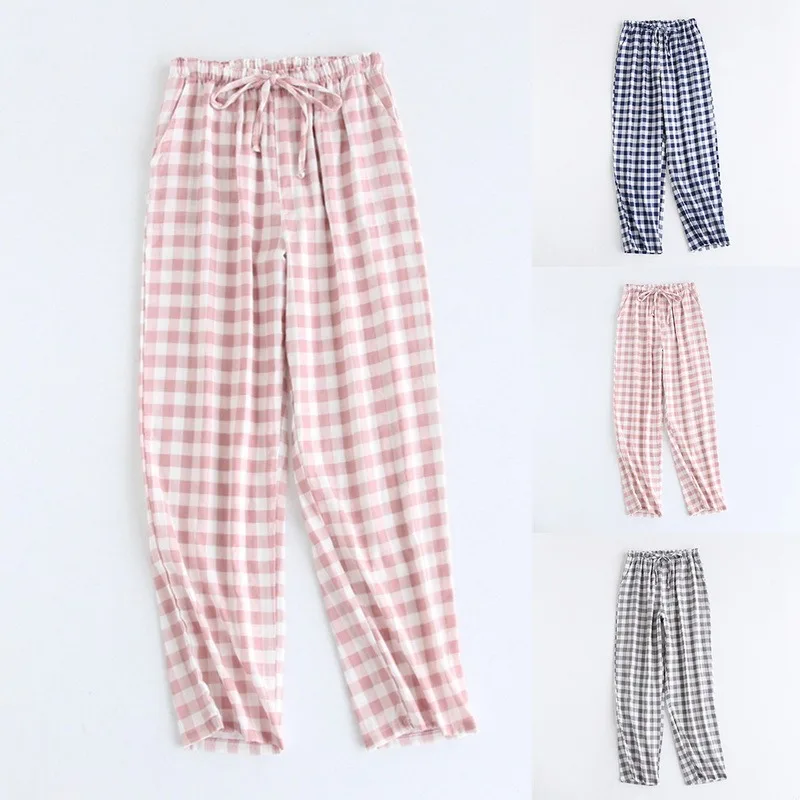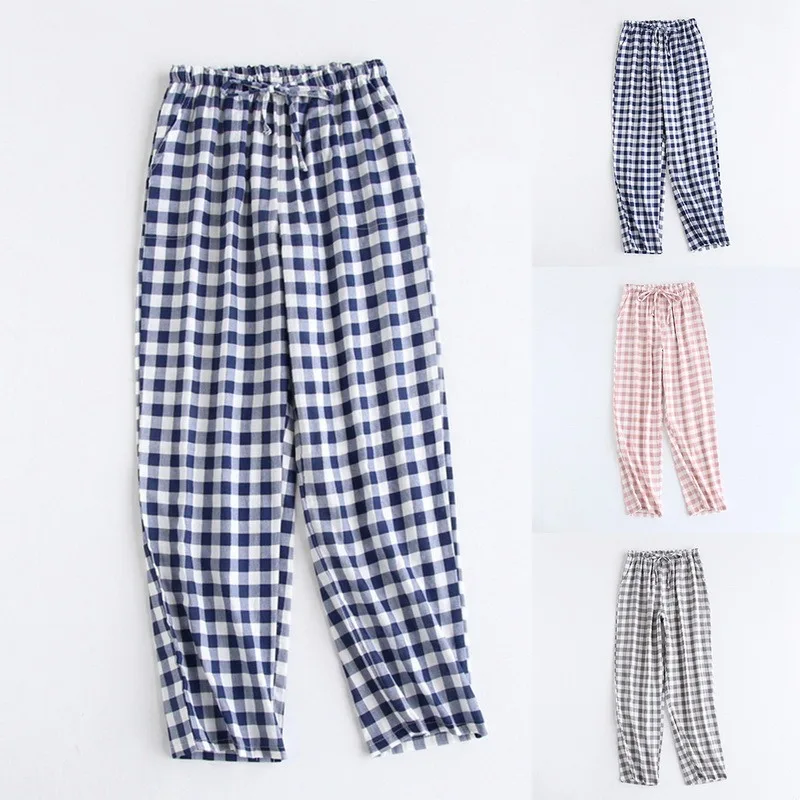 Брюки мужскиеженские из 100% хлопка в клетку, трикотажные штаны для сна, одежда для сна, короткие пижамы для пар