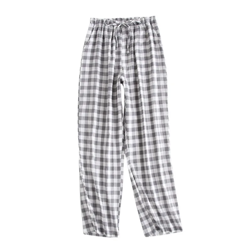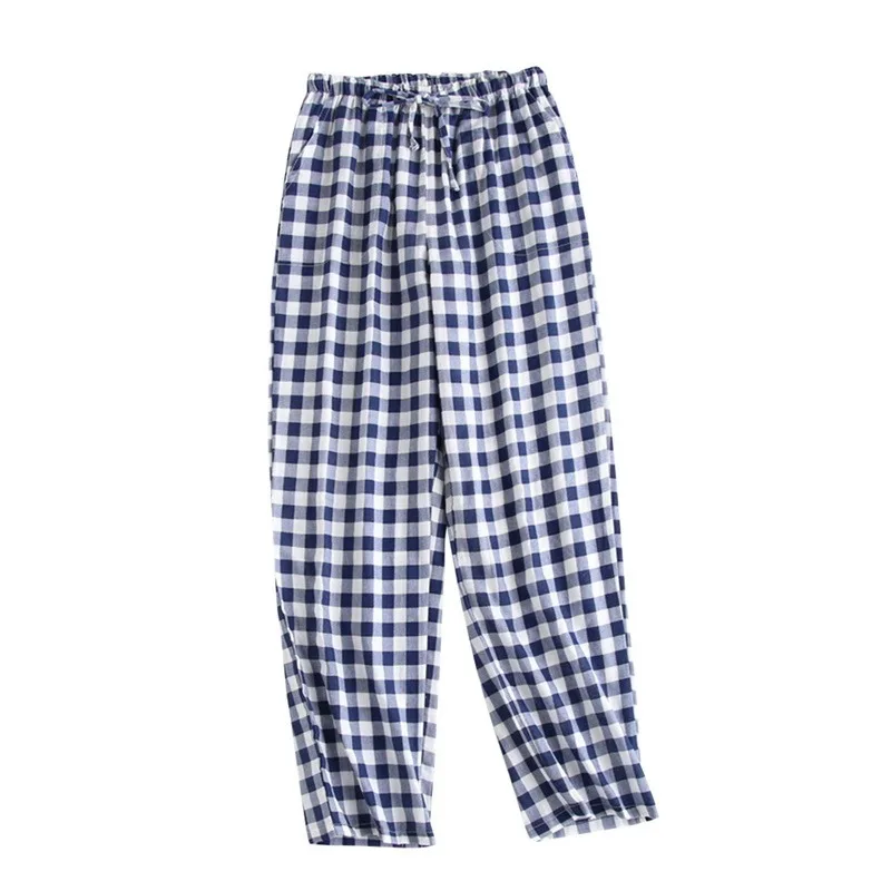 Мужские брюки из 100% хлопка, клетчатые трикотажные штаны для сна, ...