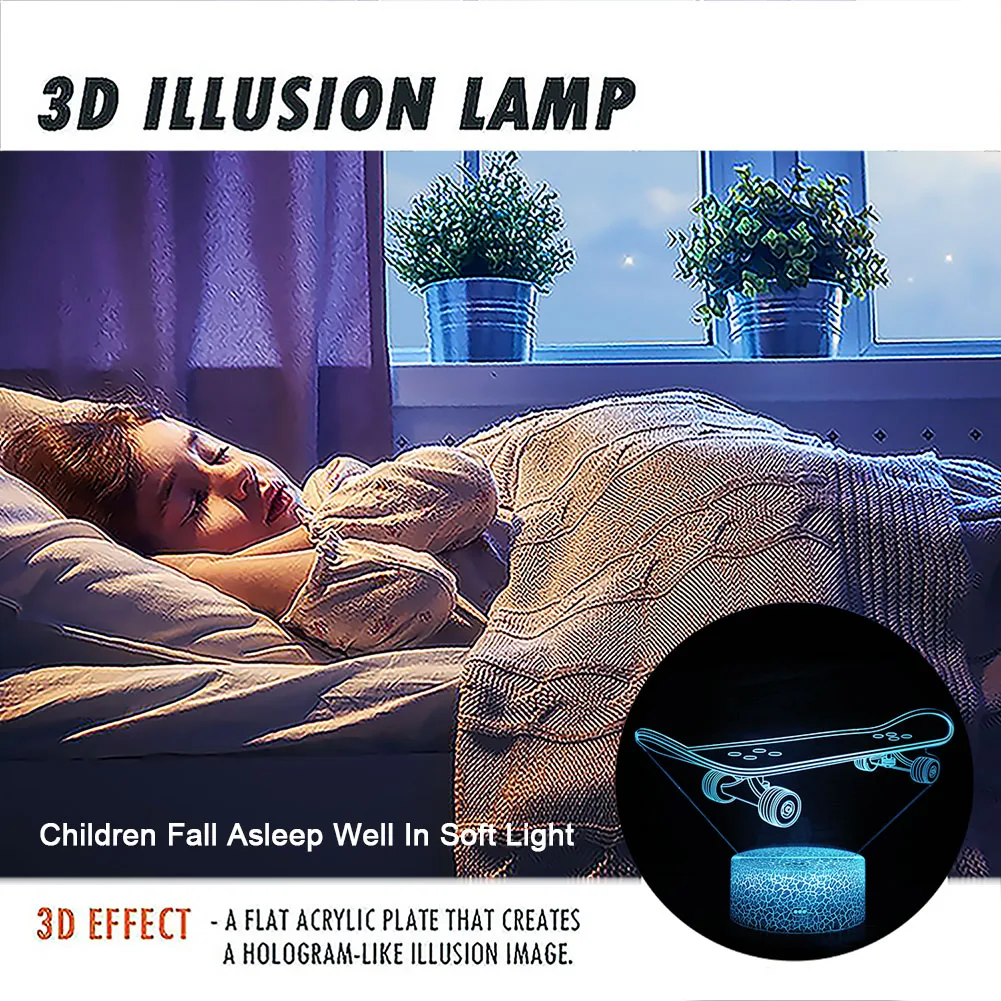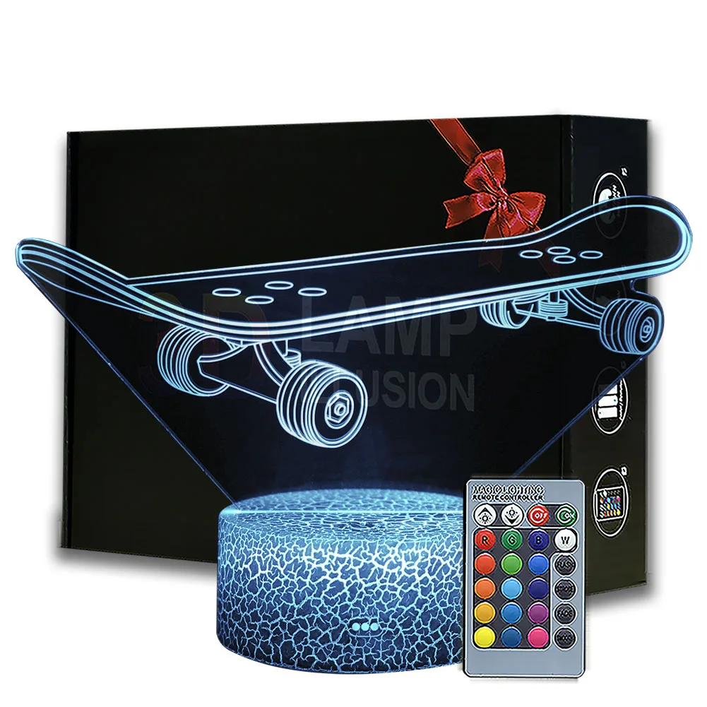 3D ночник для скейтборда, акрилосветильник Настольная лампа с основа из АБС-пластика, светсветильник льник для домашнего декора, Прямая поставка, лампа с эффектом иллюзии