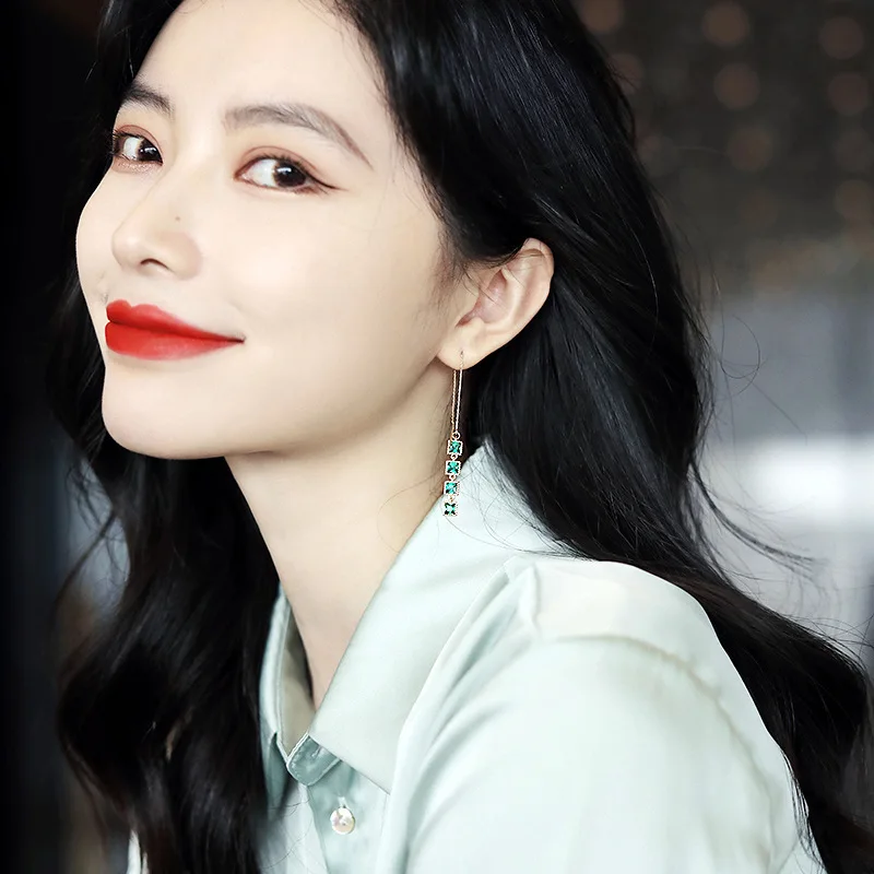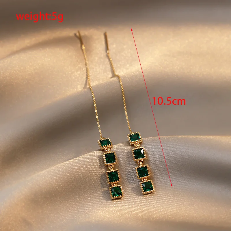 Винтажные длинные висячие серьги с кисточками зеленого цвета для женщин женские квадратные висячие серьги в Корейском стиле модные украшения