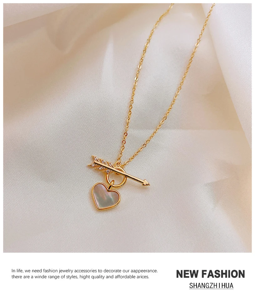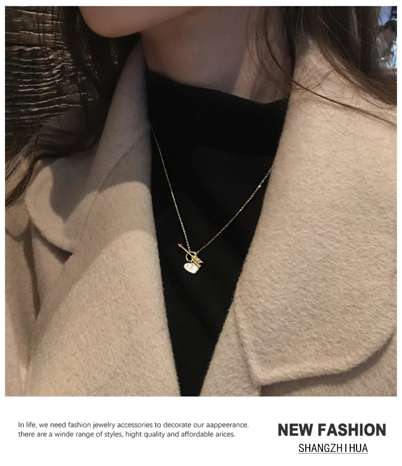 SHANGZHIHUA 2021 новый контур верхней губы со стрелкой в виде ракушки Любовь Сердце короткое ожерелье с подвеской для женщин, модные корейские драгоценности Необычные девушки цепочек на шею в форме