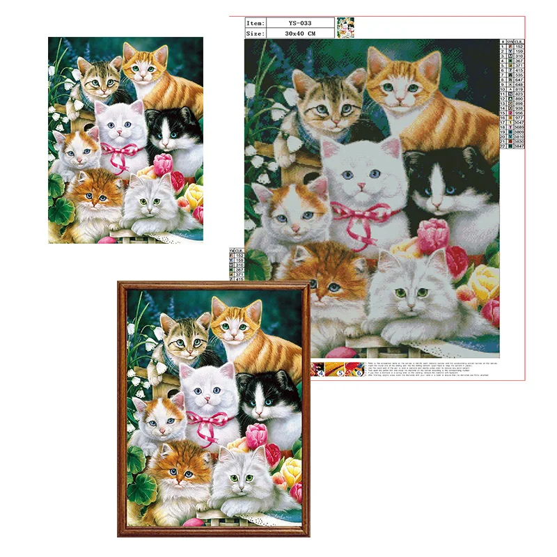 Кошек DIY алмазная живопись ", белые, черные, коричневые кошки" пол...