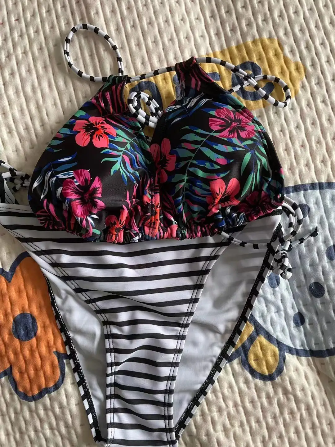 Новинка 2022, сексуальный купальник, женский купальник, бикини с пуш-ап, комплект бикини, купальный костюм, женская пляжная одежда с цветочным принтом, бикини, костюм из двух предметов