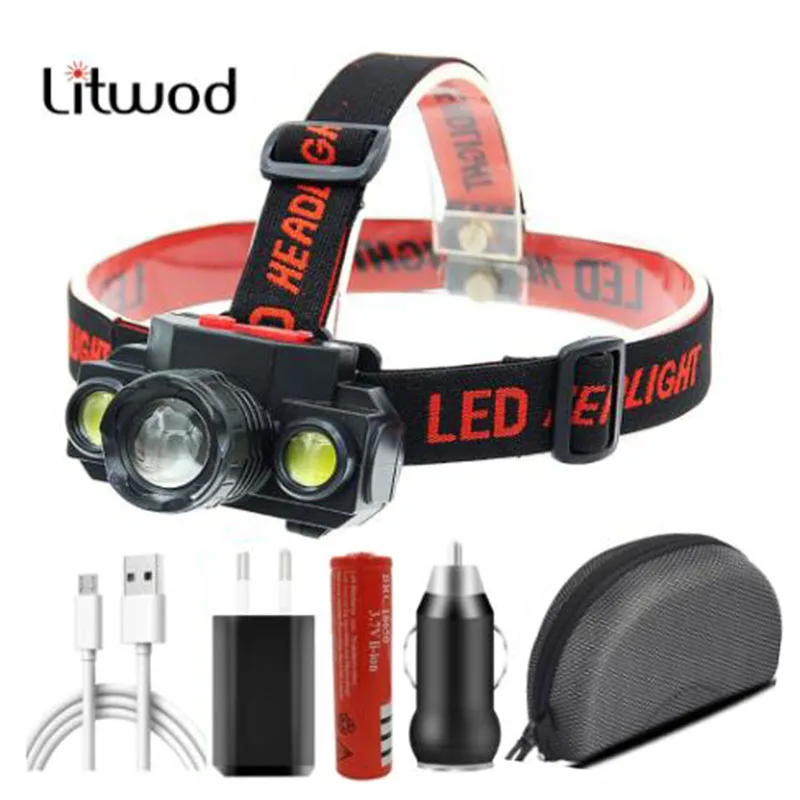 Litwod Zoomable XP-E Q5 COB светодиодный налобный фонарь с перезар...