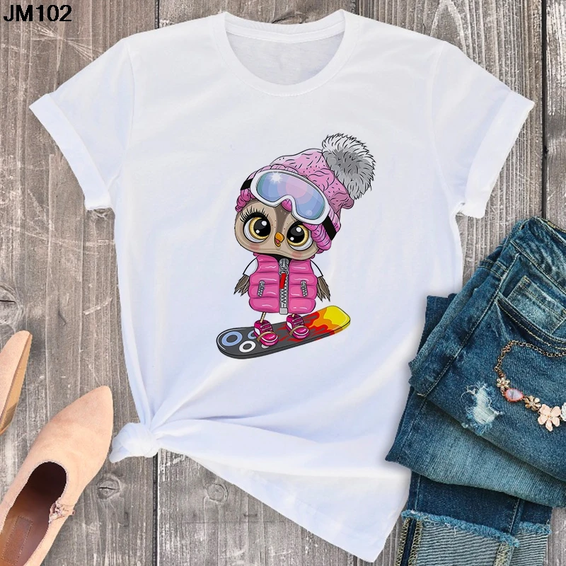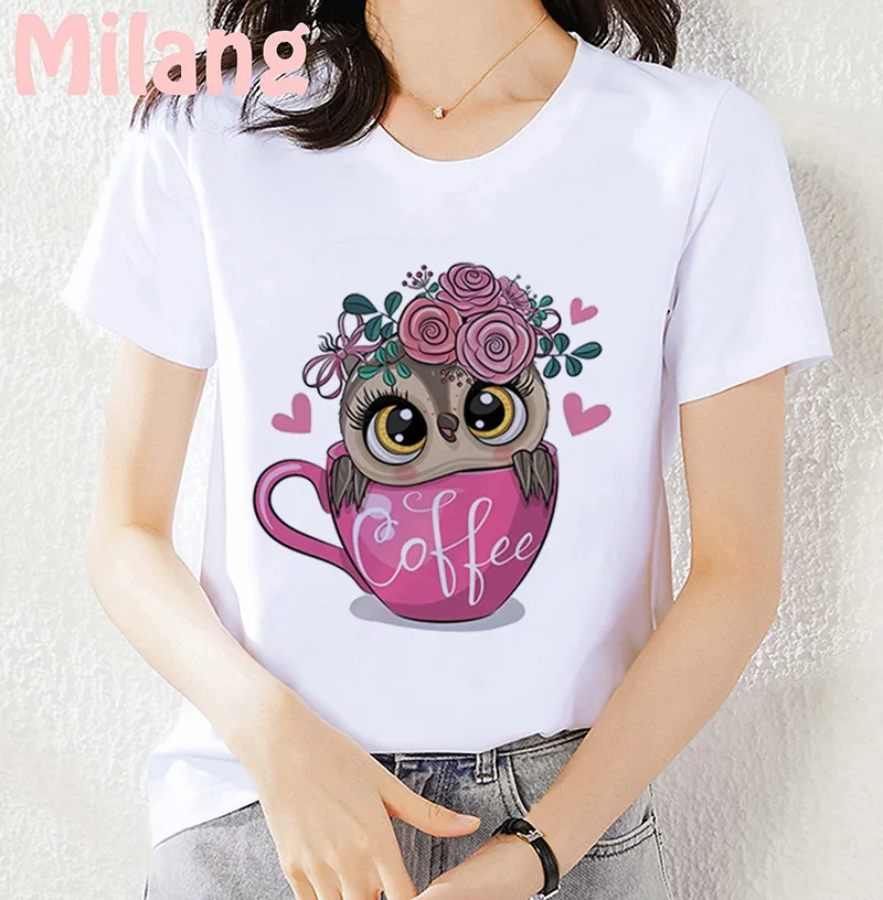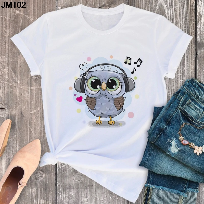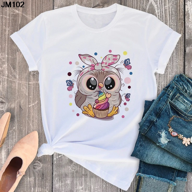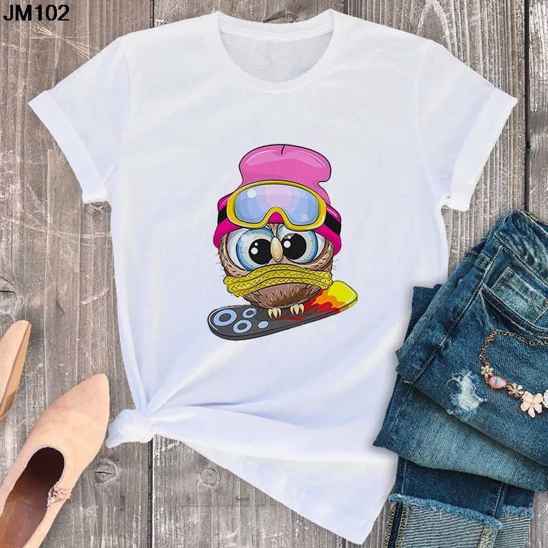 Женская футболка с принтом совы, белая футболка большого размера с коротким рукавом, в стиле Харадзюку, лето 2021