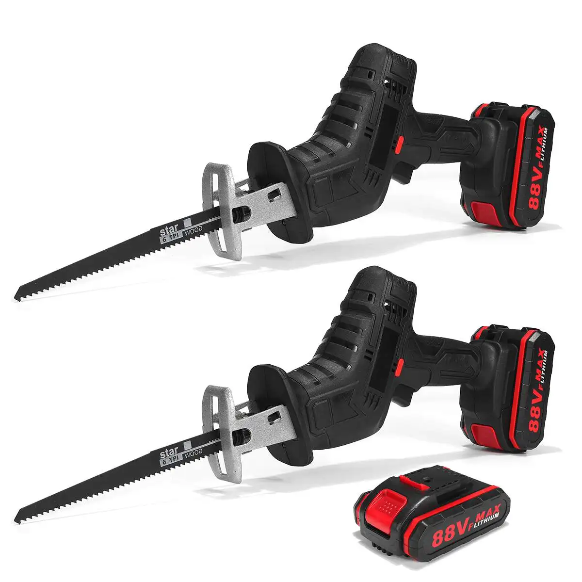 Особенности1. Мощный двигатель. 88в Аккумулятор для мощного, контролируемого, быстро режущего по дереву, трубам и металлам.2. Свободное изменение лезвия. Вы можете быстро сворачивать и заменять лезвия без использования каких-либо дополнительных инструментов.3. Триггер переменной скорости. С защитной функцией блокировки.4. Компактный дизайн. Светильник для удобного захвата. Компактный корпус обеспечивает мощную энергию.5. Светодиодный светильник. Удобно использовать в темноте или ночью.