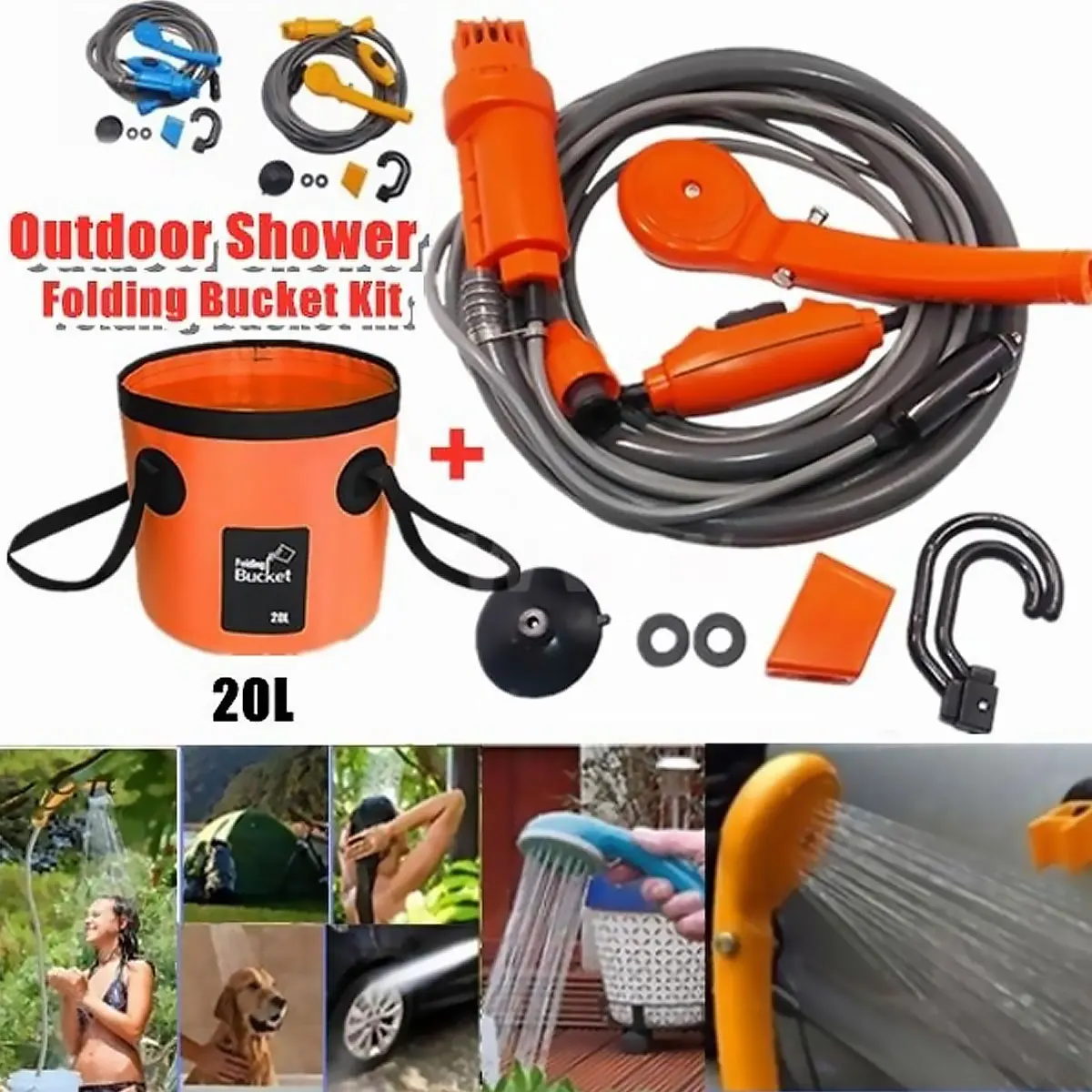 Переносной походный душ уличный душ с 20 л водяным ведром 12 В, автомобильная мойка, Душевая установка, Электрический насос, для отдыха на открытом воздухе, кемпинга, путешествий, домашних животных