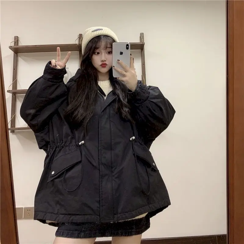 Новая зимняя куртка, объемное шерстяное Ковбойское пальто из овечьей шерсти, Свободная Женская длинная одежда с капюшоном и хлопковой подкладкой, шерстяная куртка