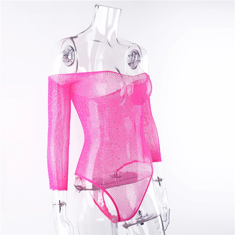 Женские блестящие стразы с вырезом лодочкой, сексуальное боди, сетч...