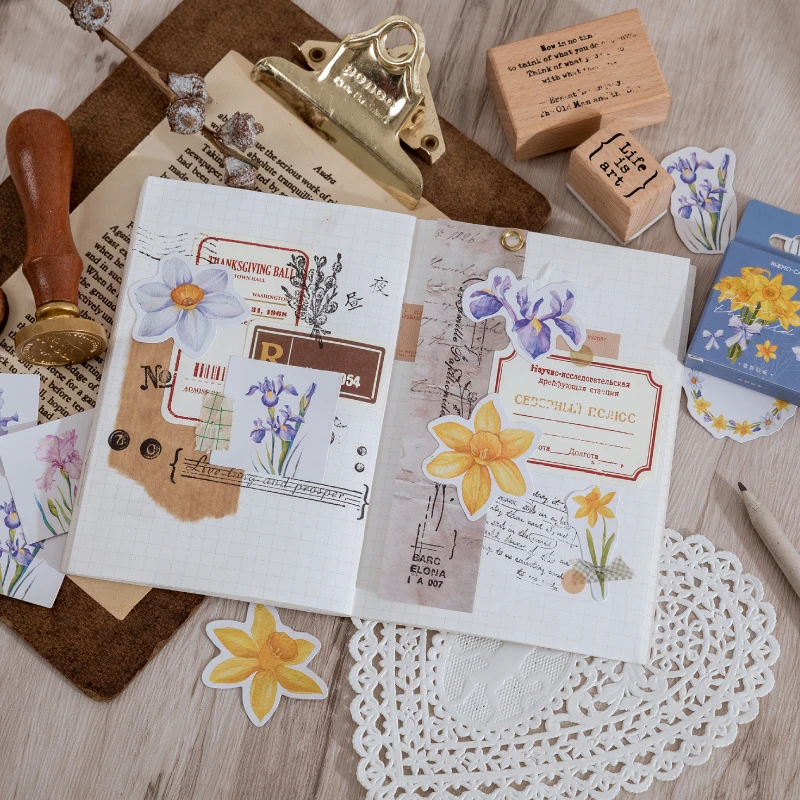46 шт./коробка, винтажный букет, бумажные наклейки с растениями, декоративные наклейки, стикеры «сделай сам», журнал дневник в стиле Скрапбукинг, этикетка