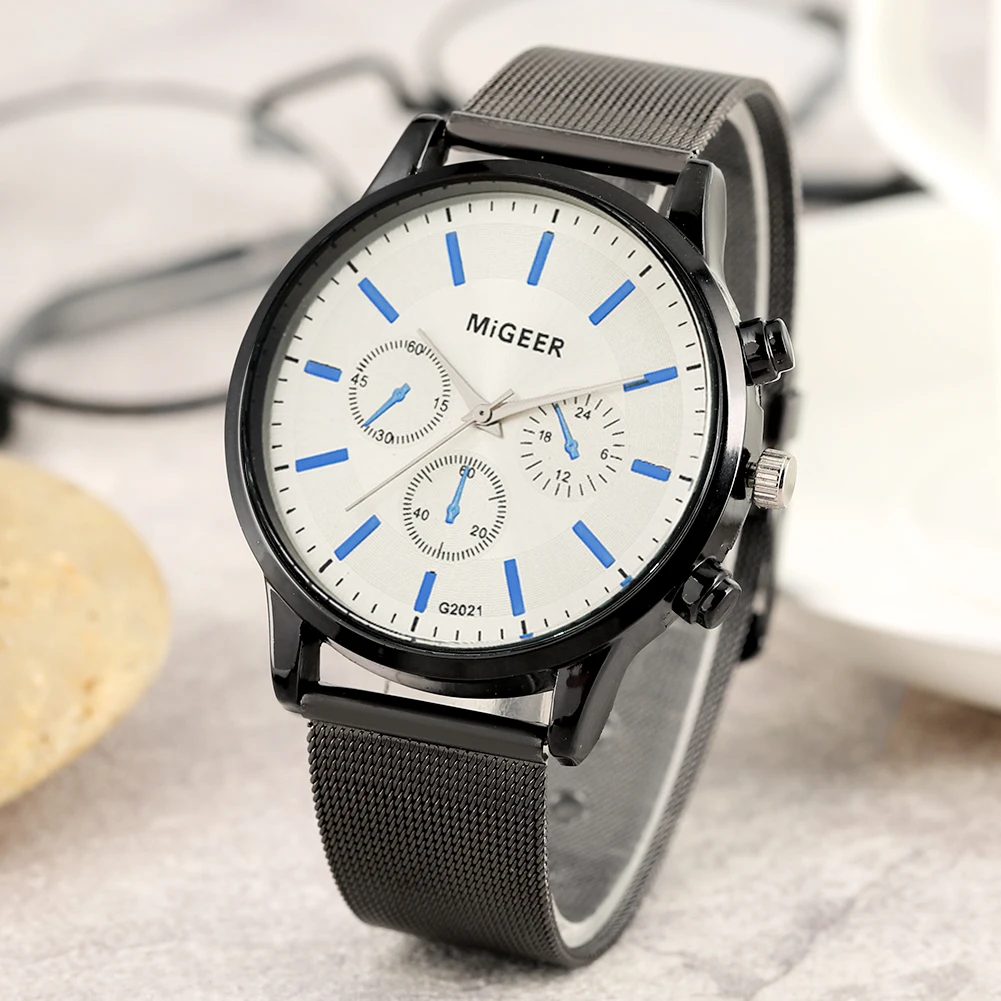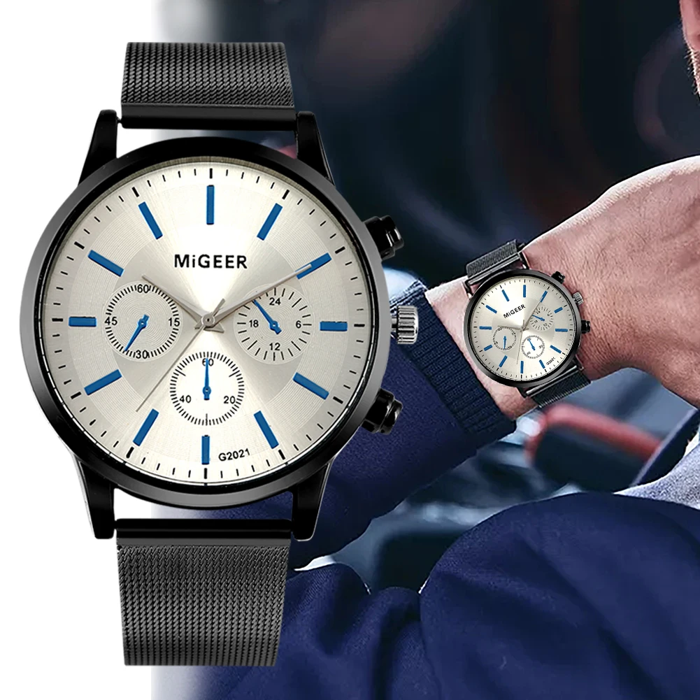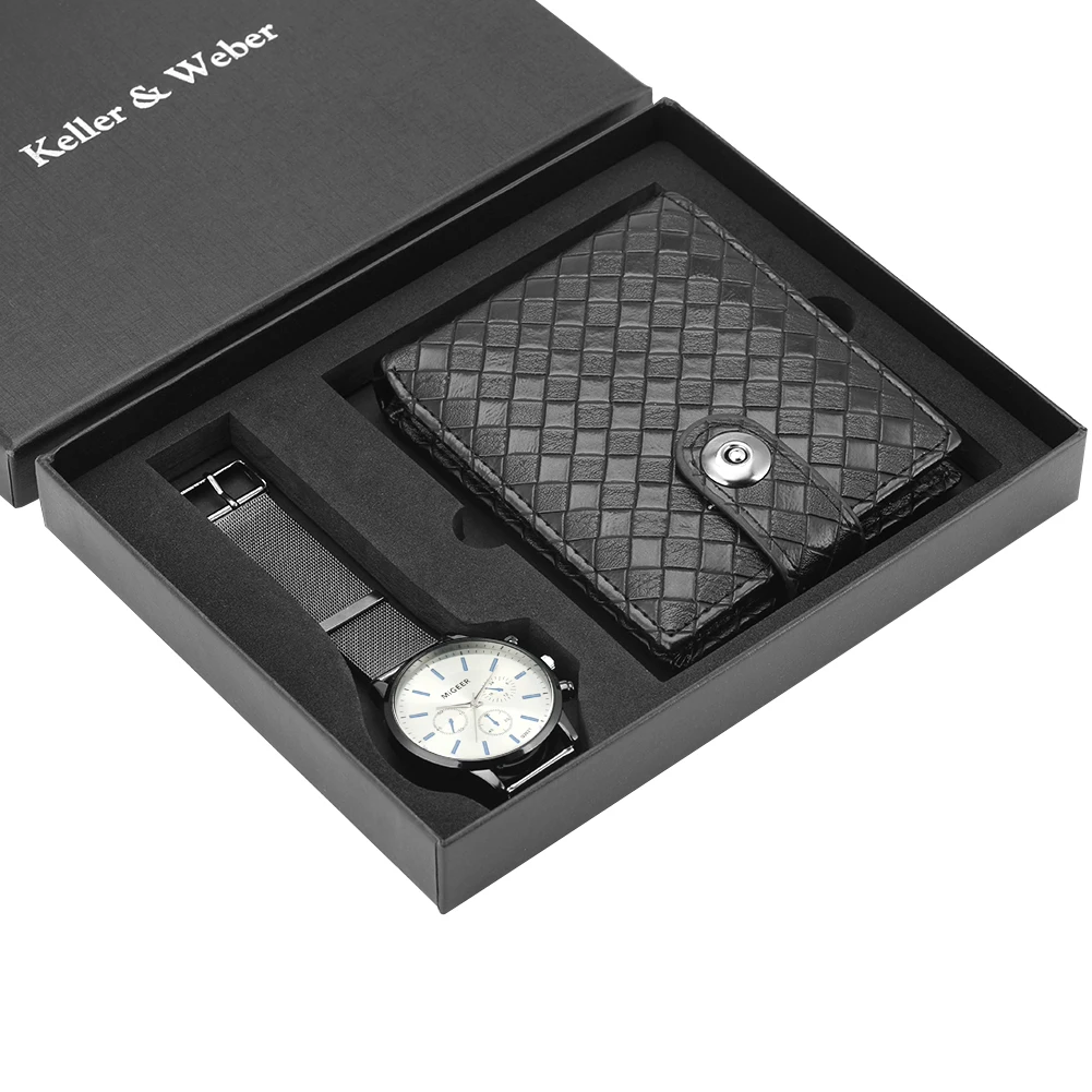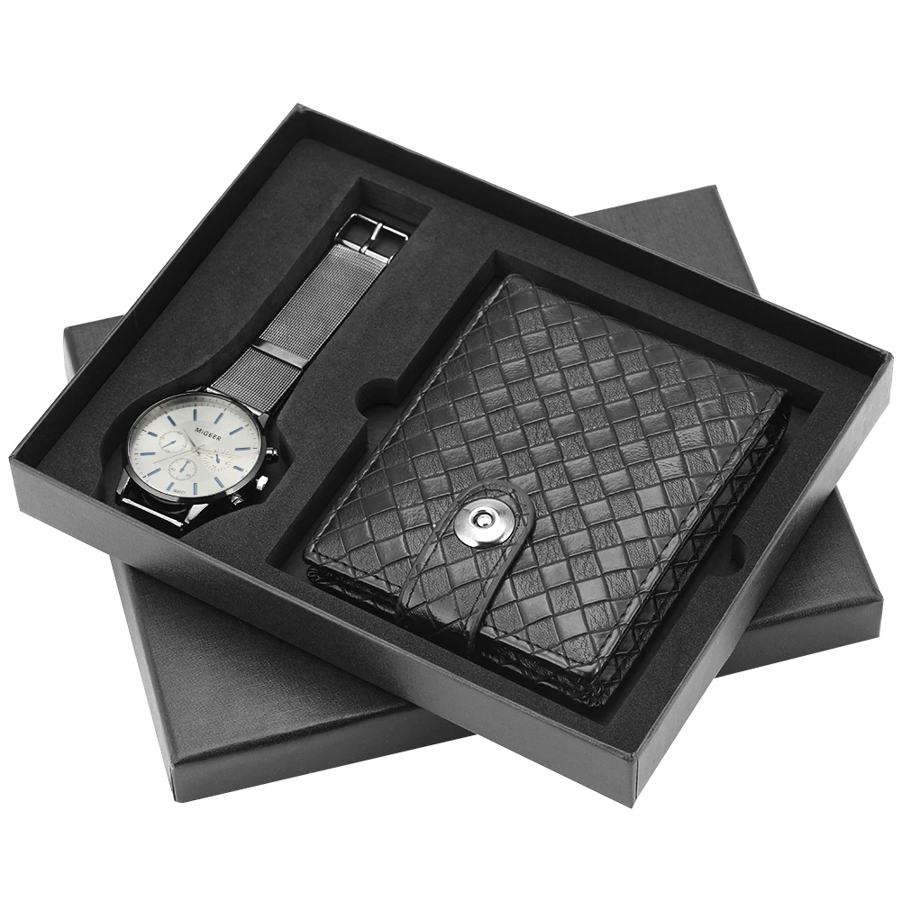 Набор мужских часов, кварцевый Циферблат, сетчатый ремешок с классической пряжкой, кожаный кошелек, чехол для карт, Подарочная коробка, подарок для отца, мужа
