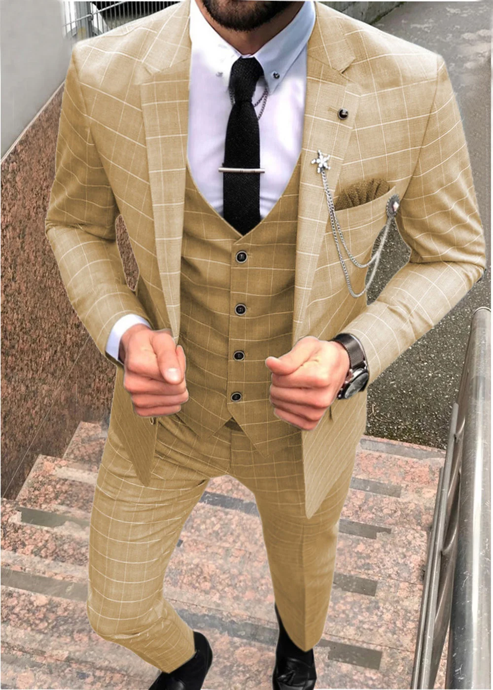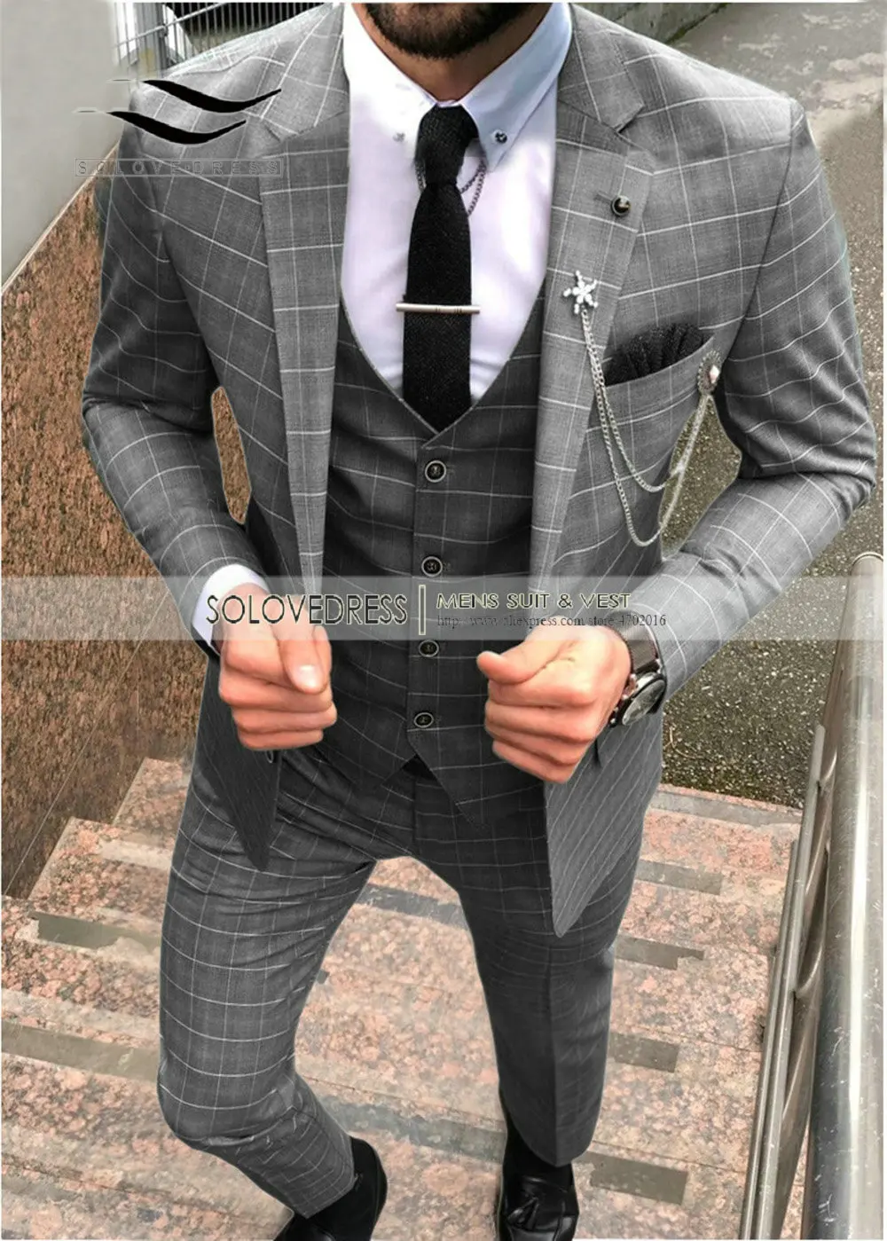Для мужчин рубашка в клетку костюмы Slim Fit Выходные туфли на выпускной смокинги 3 предмета однотонный лацкан с тупым углом; Смокинги для Свадебные, для жениха (пиджак + жилет + брюки), синего цвета и цвета шампанского