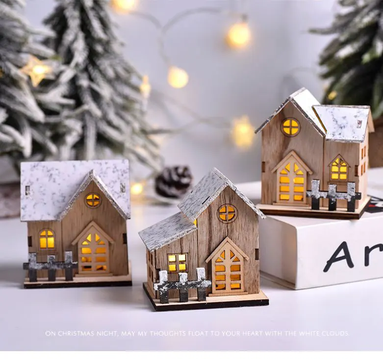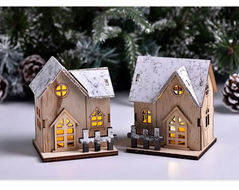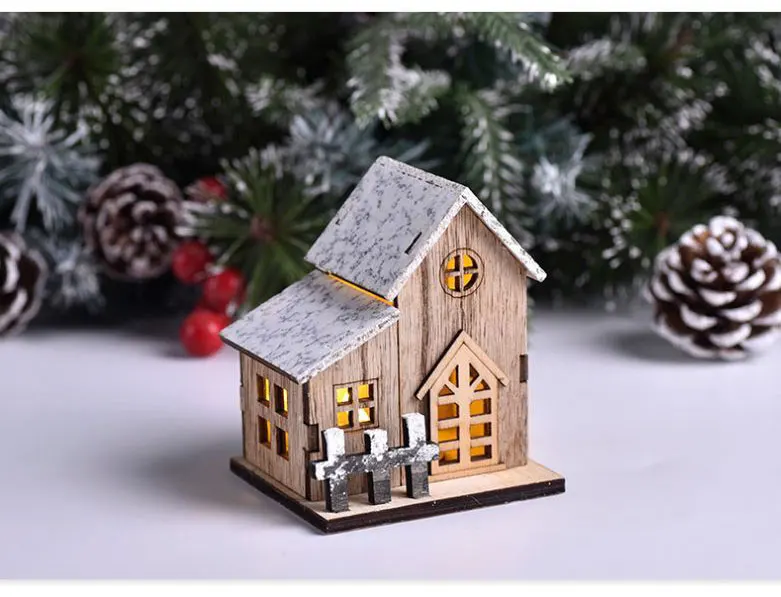Рождественское новое украшение, маленький деревянный дом, светодиод...