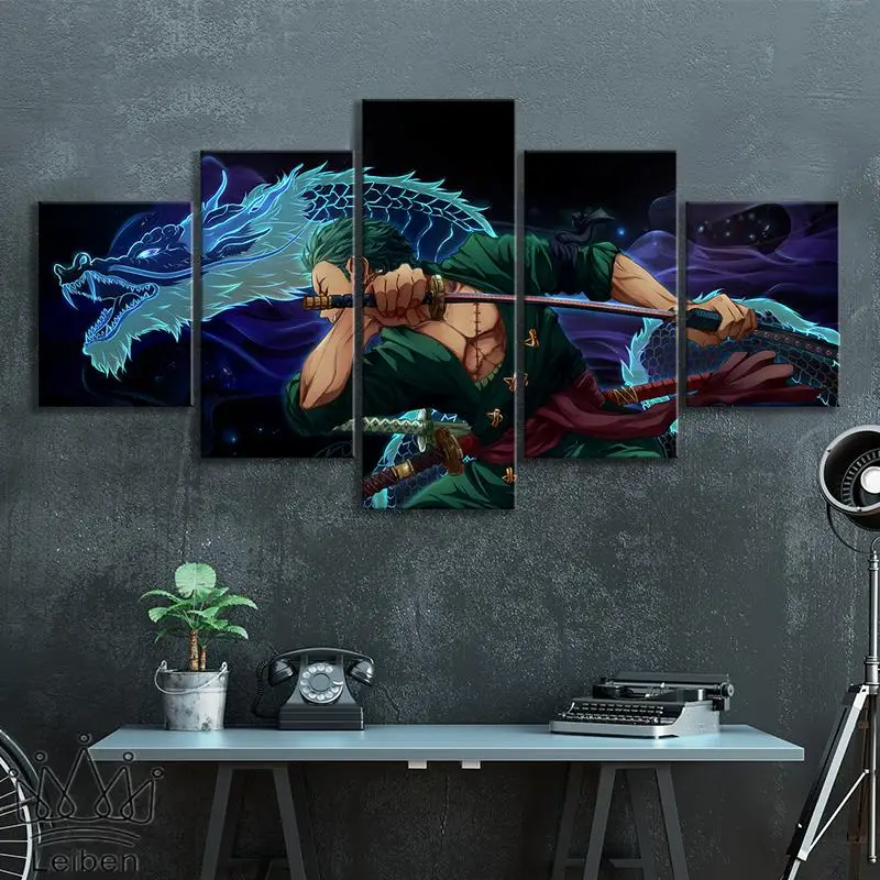 Постеры и принты ророноа Зоро из 5 панелей, картины на холсте с японскими манга, домашний декор для гостиной, картины большого размера