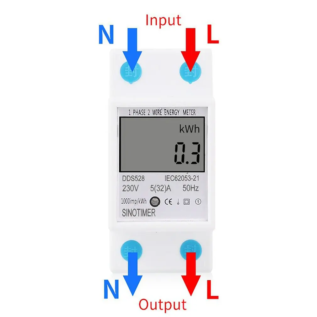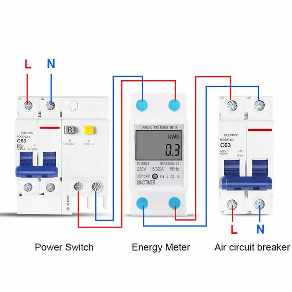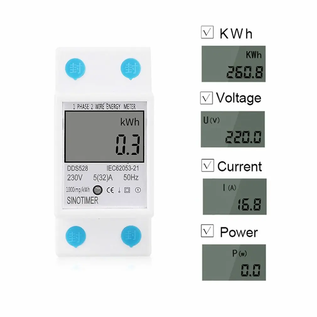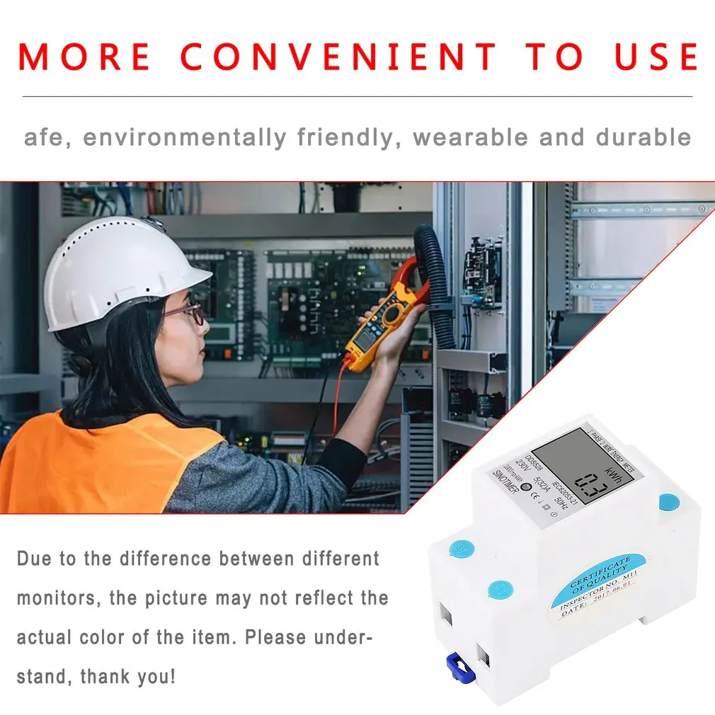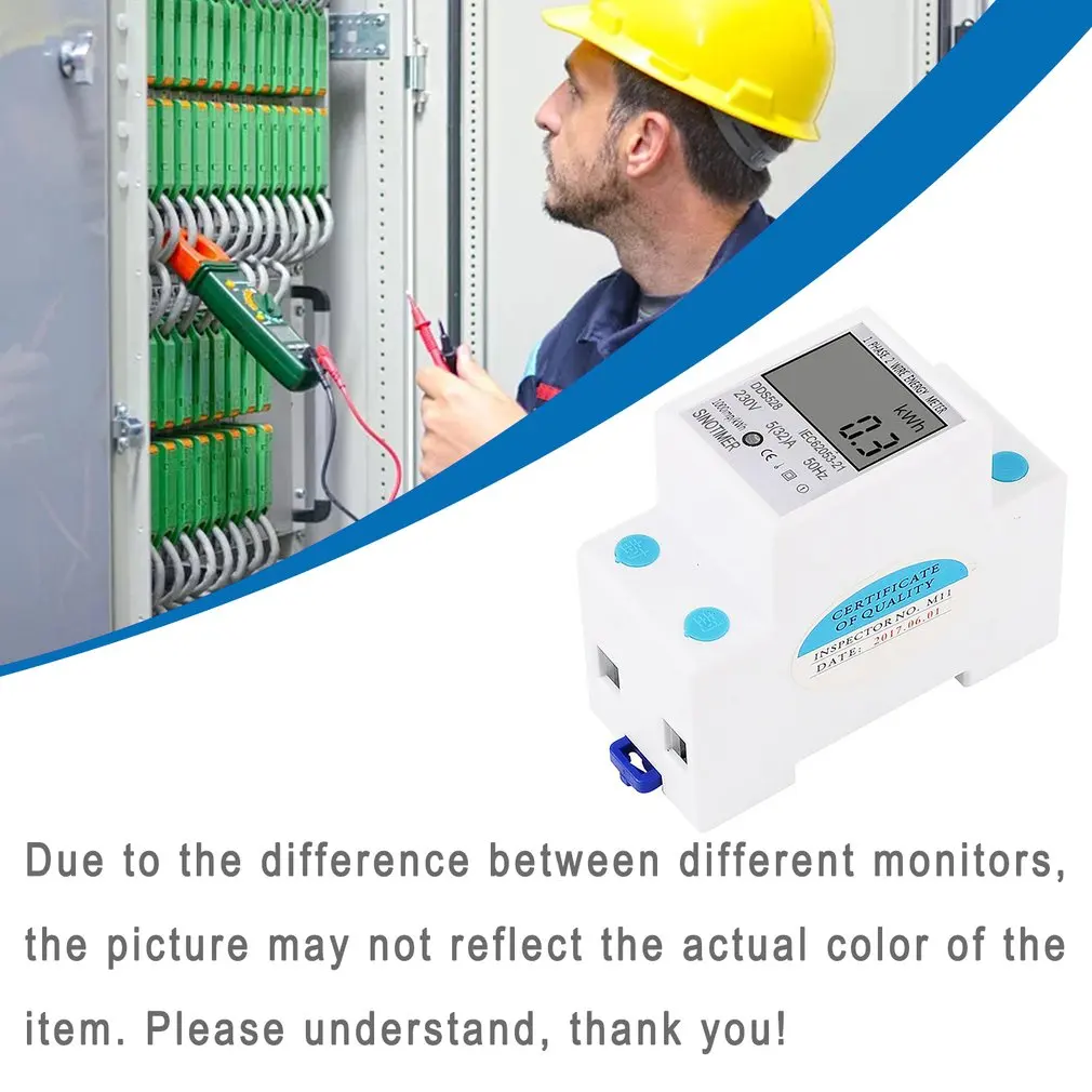 Домашний цифровой измеритель потребления электроэнергии на DIN-рейке с ЖК-дисплеем, однофазный счетчик электроэнергии, ватттметр, 220 В переменного тока, 50 Гц