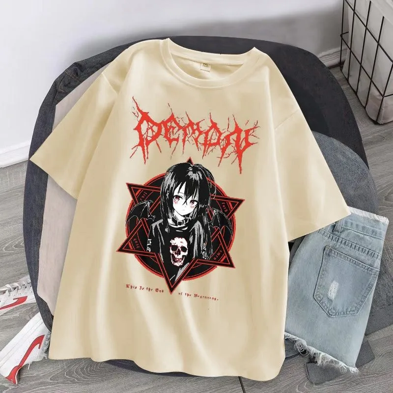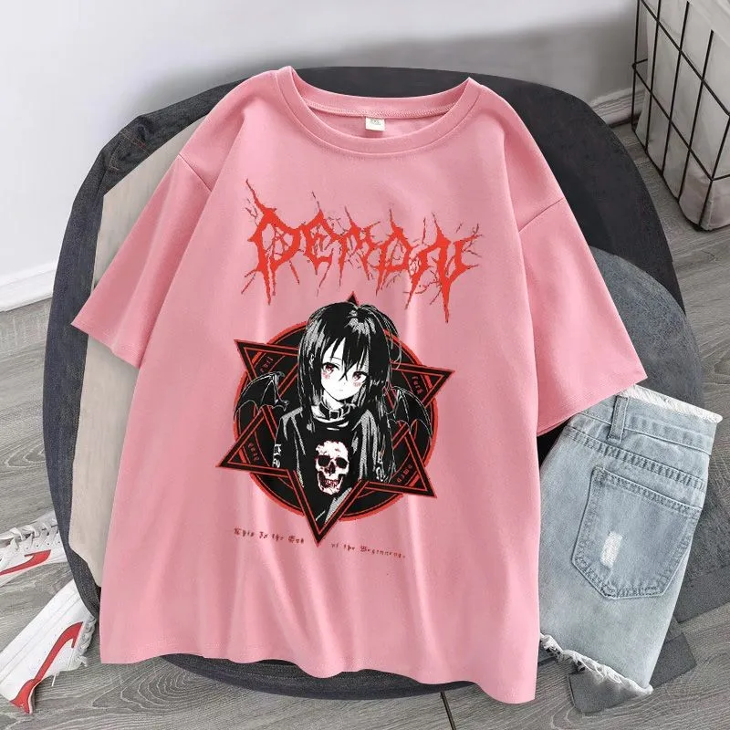 Футболка в стиле Харадзюку, рубашка с коротким рукавом и круглым вы...
