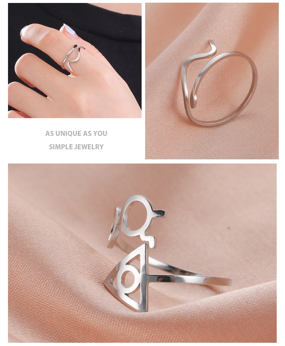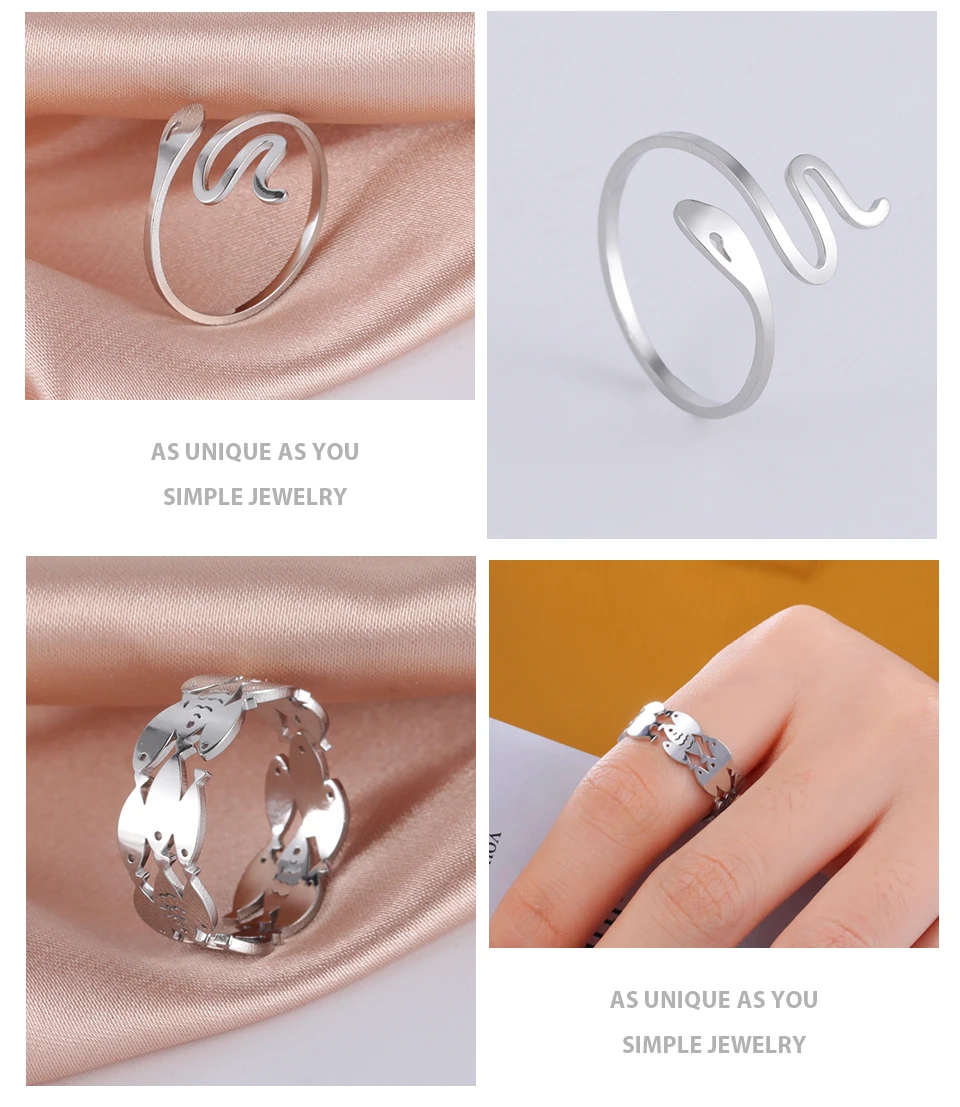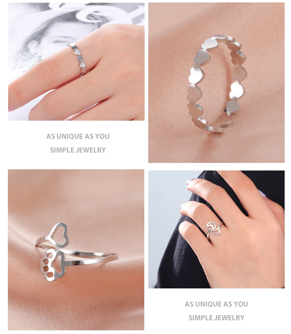 Teamer Женские кольца из нержавеющей стали парные Кольца Сердце Кошка лапа цветок Змея звезда музыка регулируемое кольцо на палец подарок 2022 тренд
