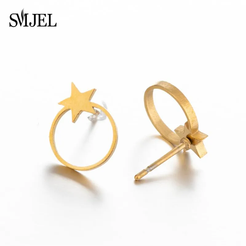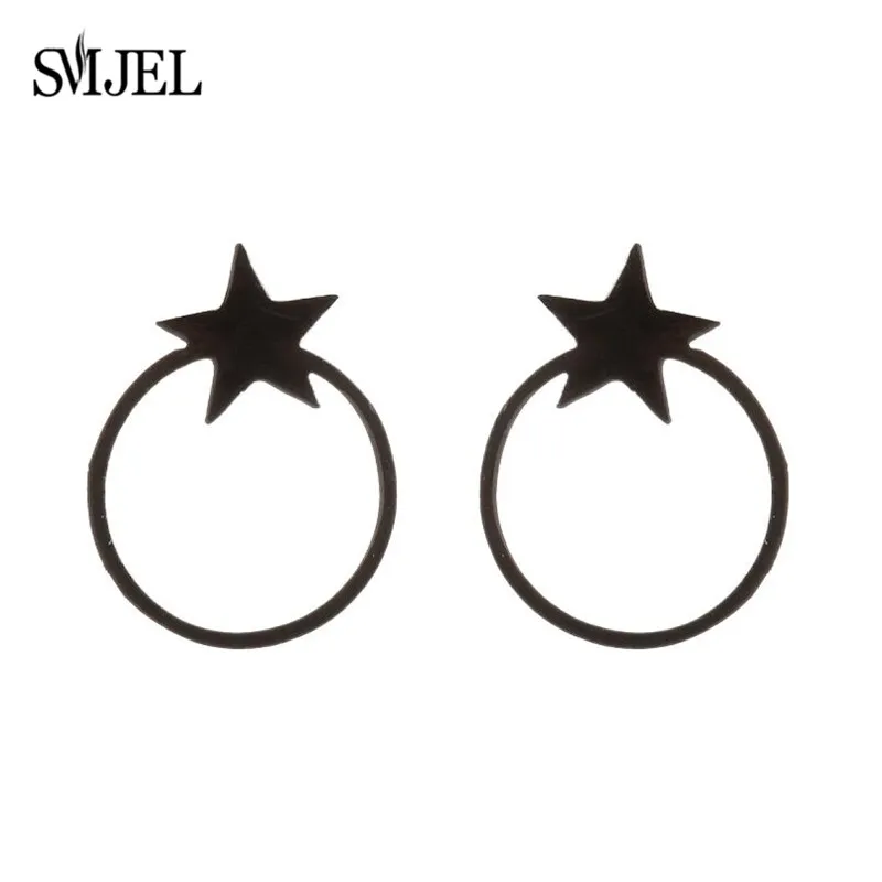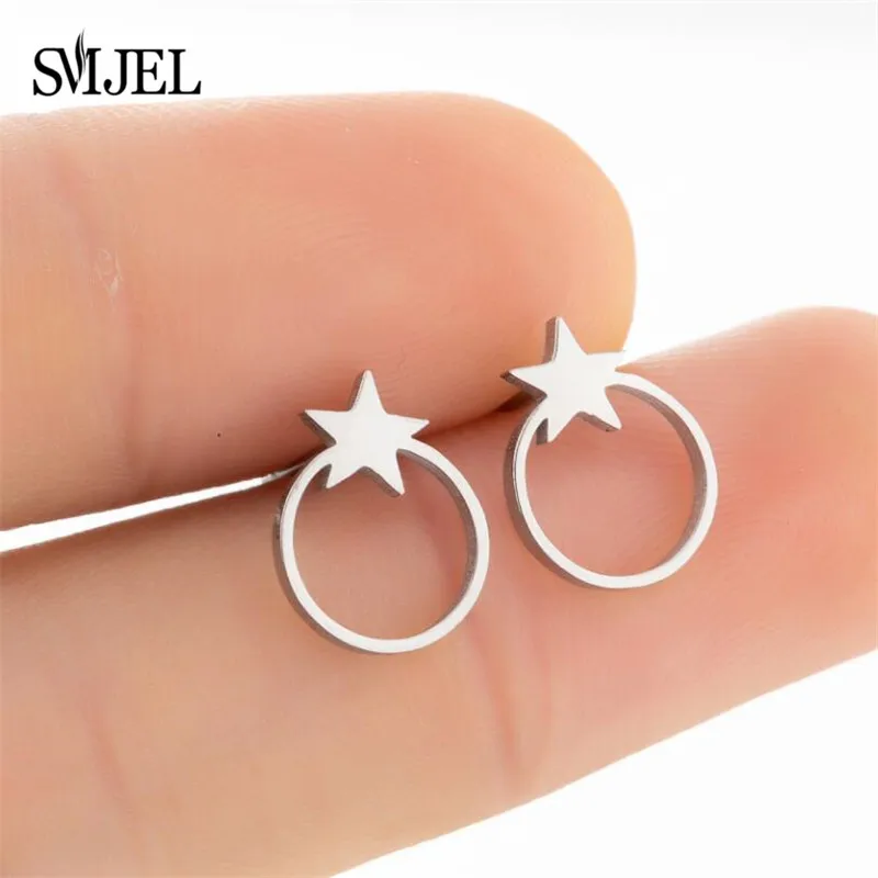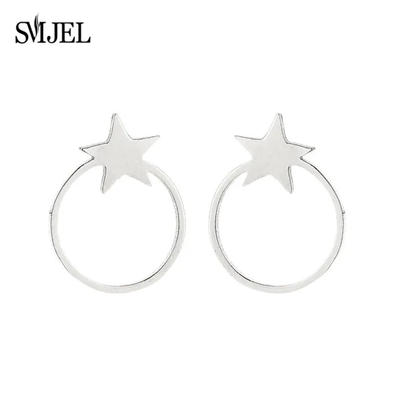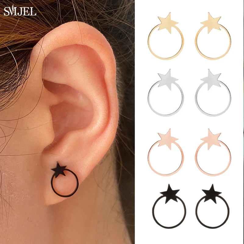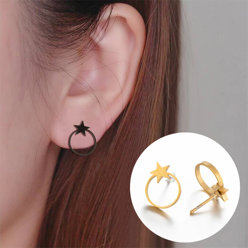 Женские серьги-кольца со звездой, из нержавеющей стали