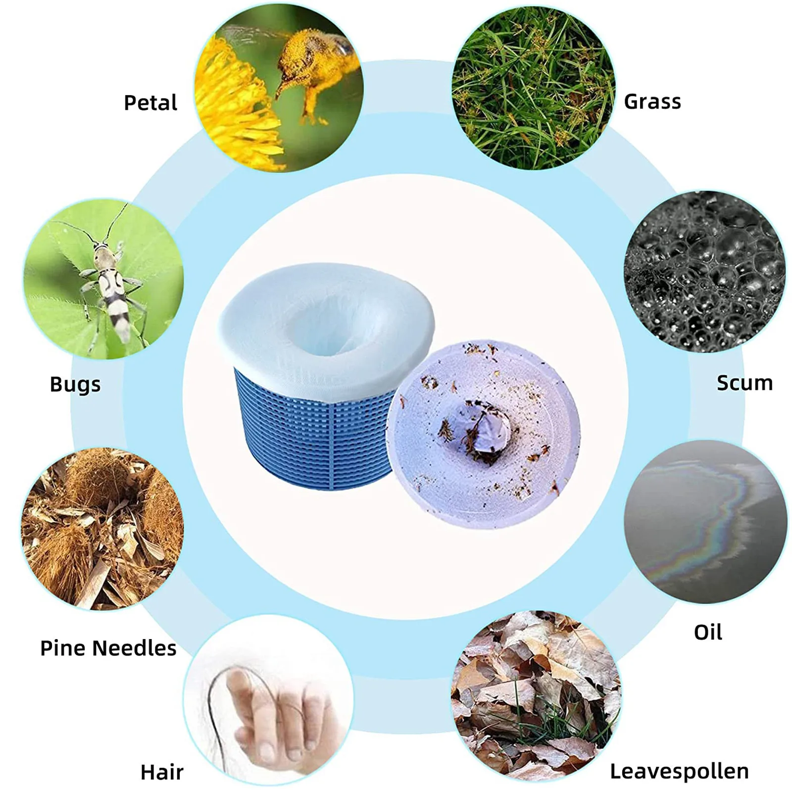 Скиммер носок каждые 4-8 недельЭти носки-корзины для бассейна подойдут к любому размеру и форме скиммера.Посылка включает в себя: