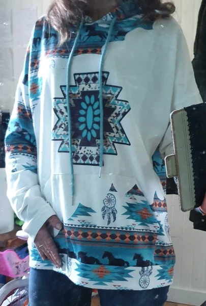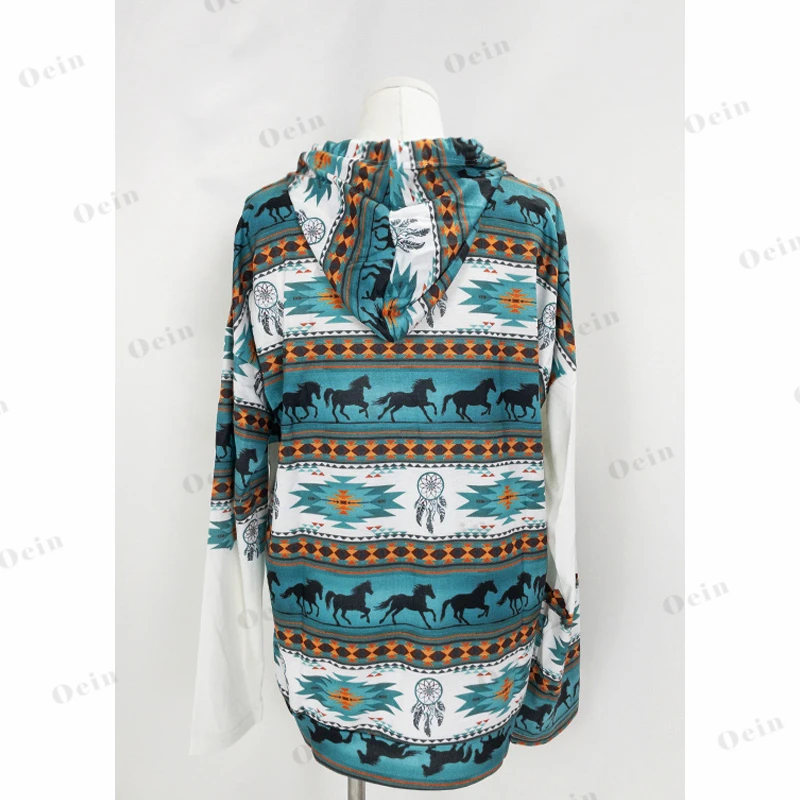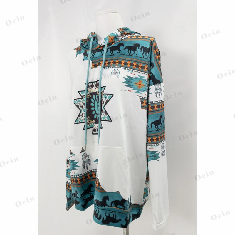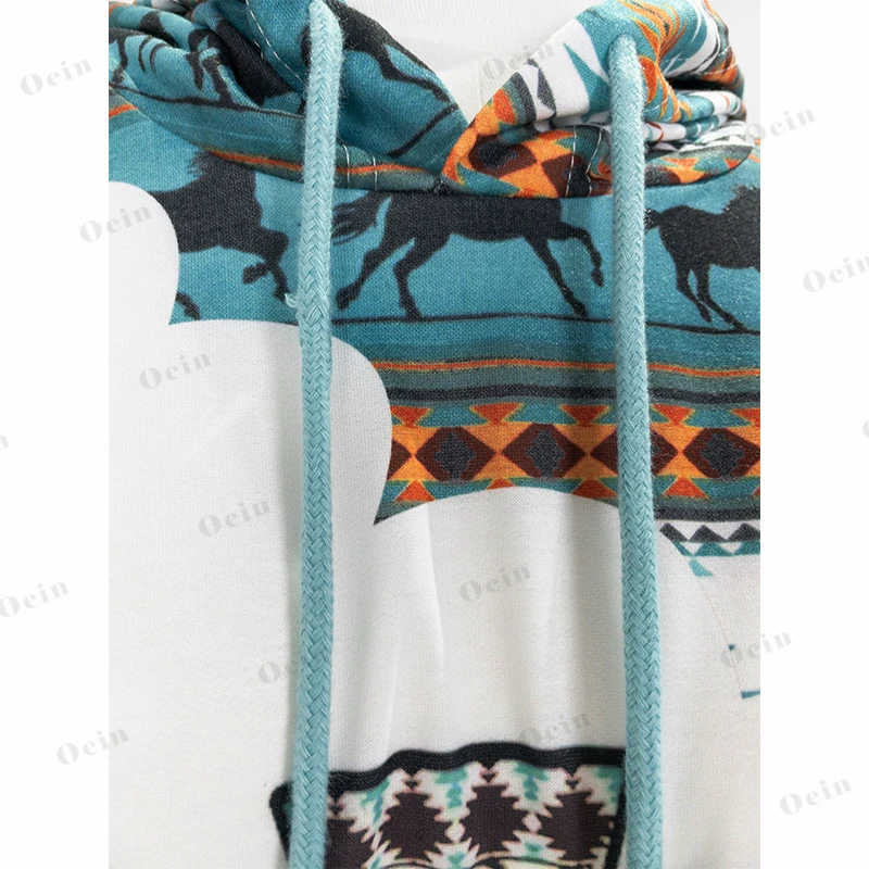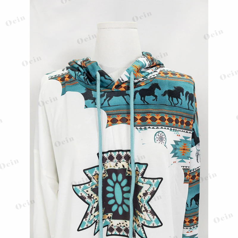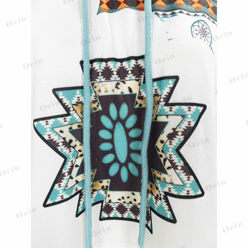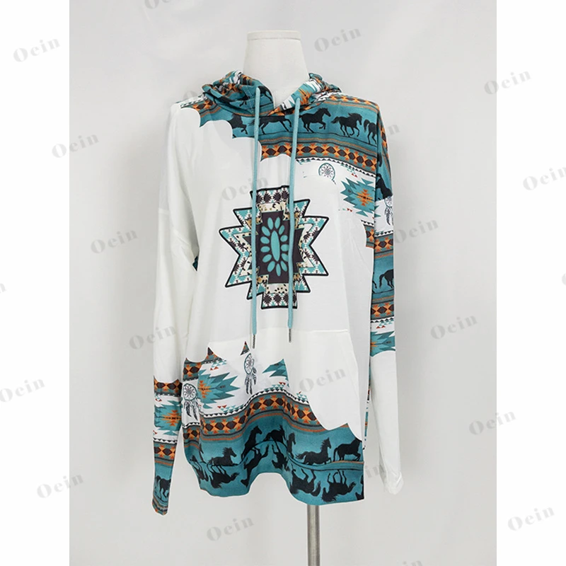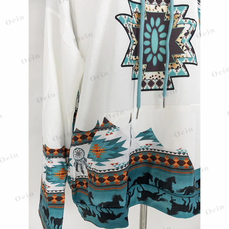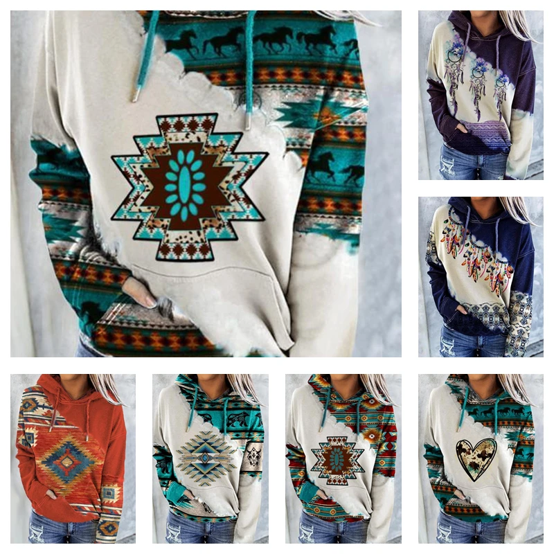 Осень 2021, женская одежда, топы, свитера, толстовки с карманами и кулиской в этническом стиле с индийским принтом