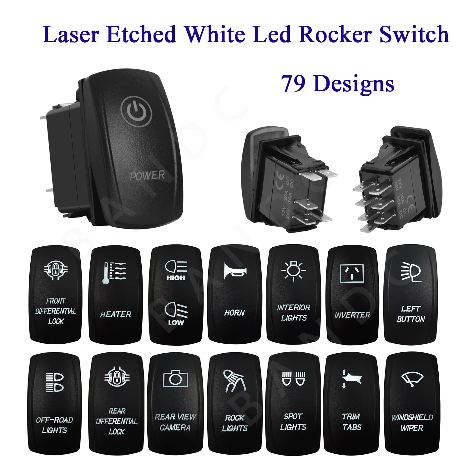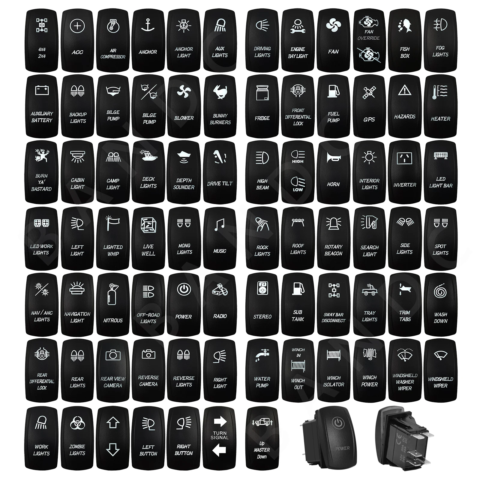 -Большинство из них-5 контактов ВКЛ-ВЫКЛ SPST (однополюсный одиночный бросок) с лазерным гравированным перекидным переключателем с двумя встроенными белыми светодиодными лампами