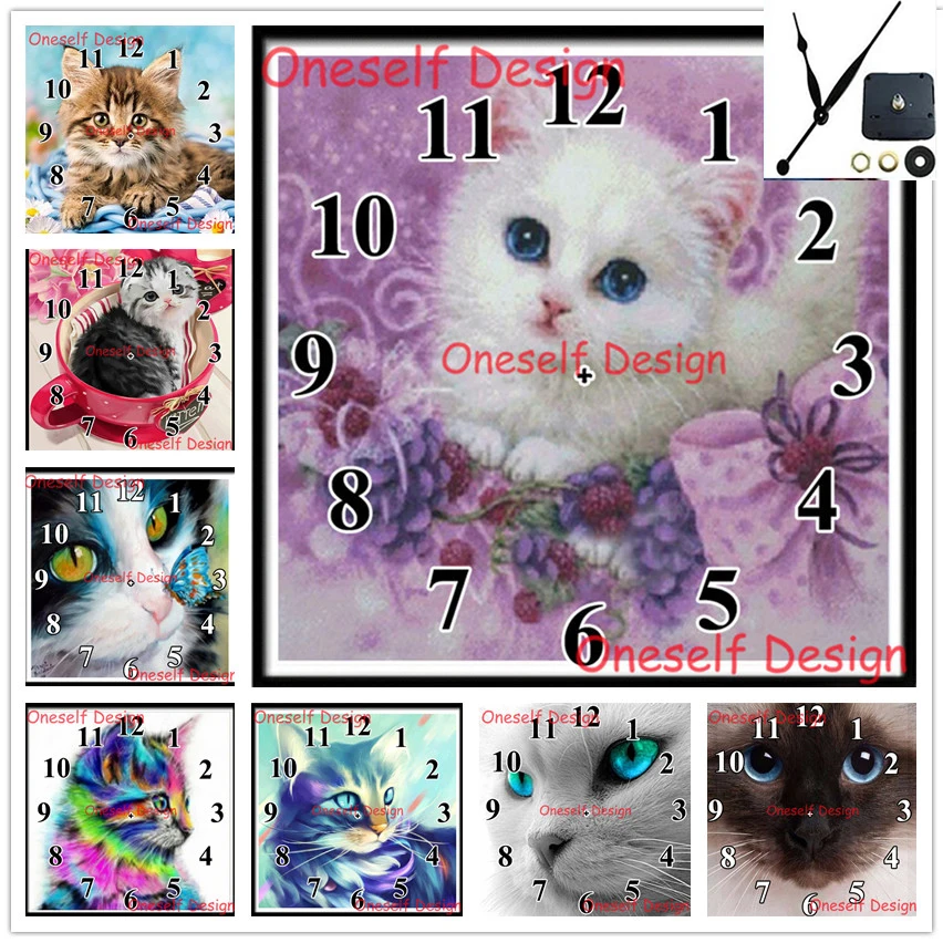 Алмазная живопись с часами, милая кошка 5d, алмазная вышивка с часа...