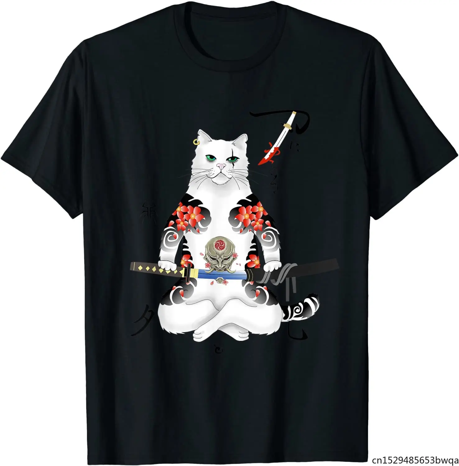 Футболка с татуировкой японского самурайского кота катаны ниндзя якудзы
