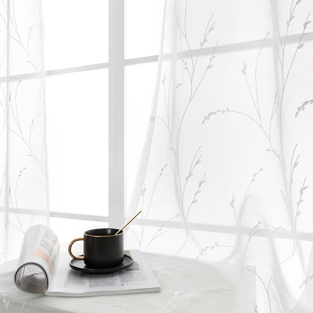 Полупрозрачные шторы MRTREEES с вышивкой для гостиной, спальни, око...