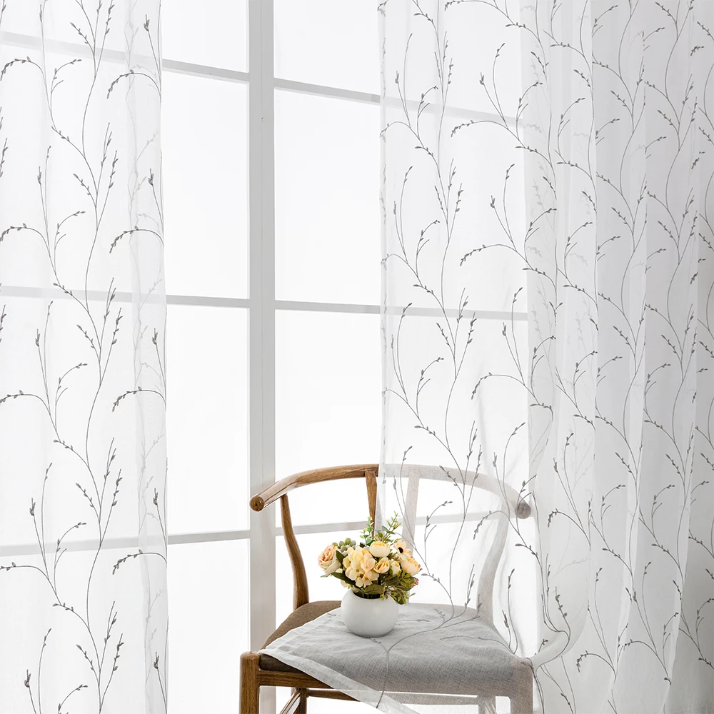 Прозрачная занавеска с вышивкой для гостиной, спальни, офиса, кухни...