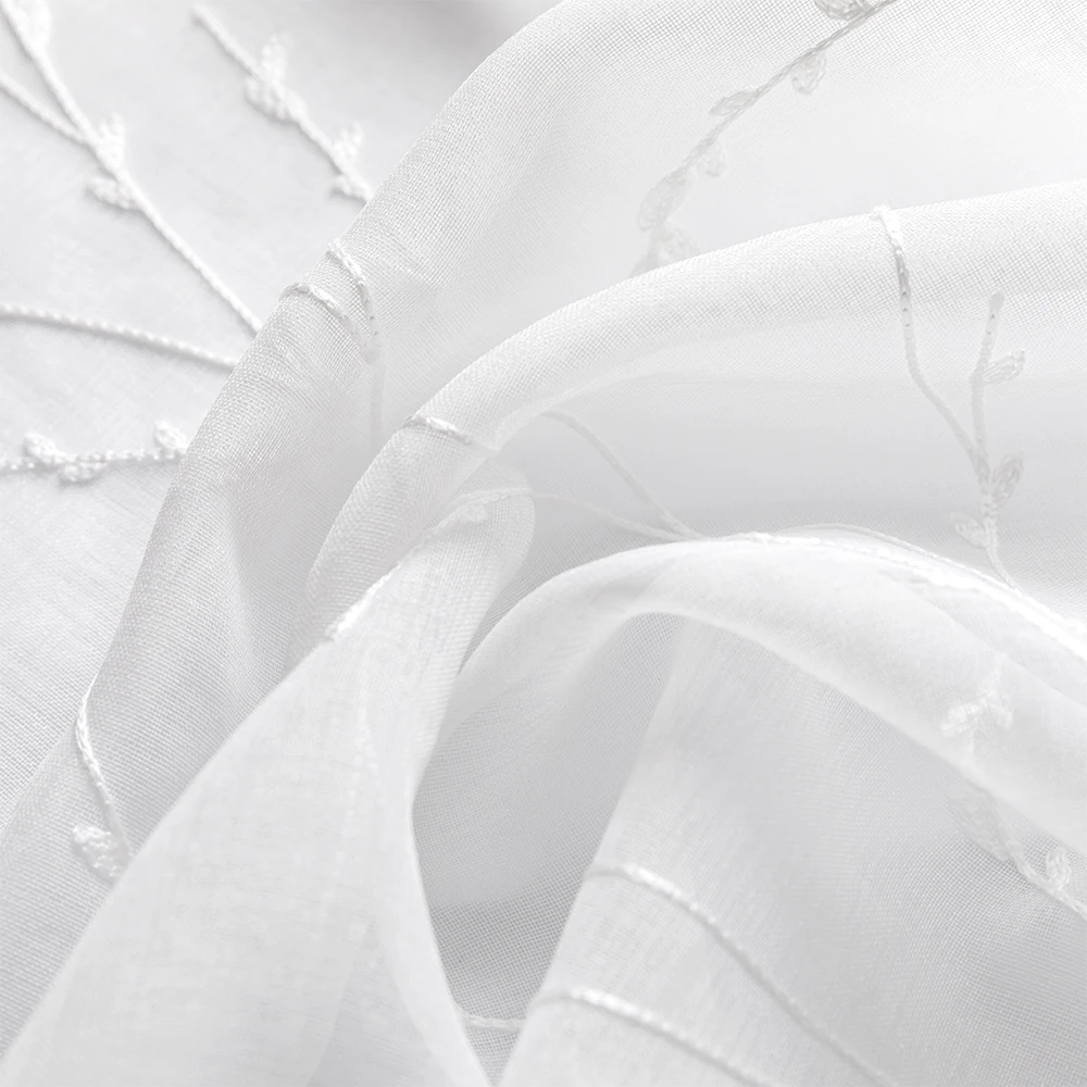 Занавеска CDIY из тюля, белая, для гостиной, с вышитыми листьями