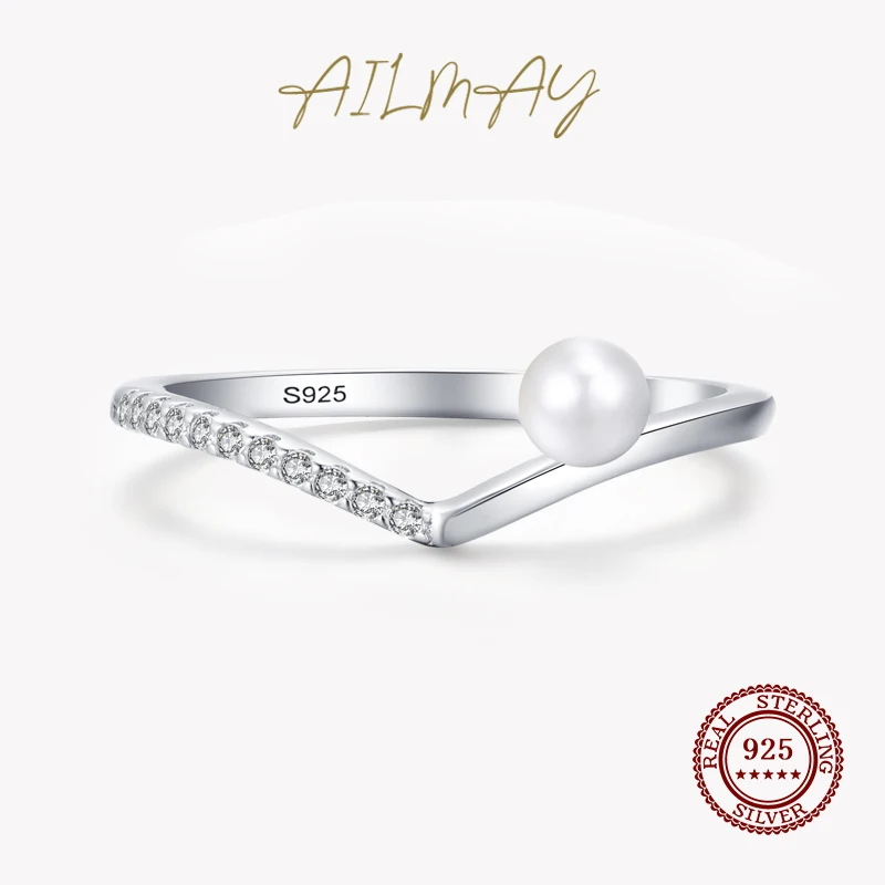 Ailmay Аутентичные 925 стерлингового серебра Элегантные Простые кубического циркония и капли воды, кольца для женщин, ювелирное изделие для помолвки, свадьбы