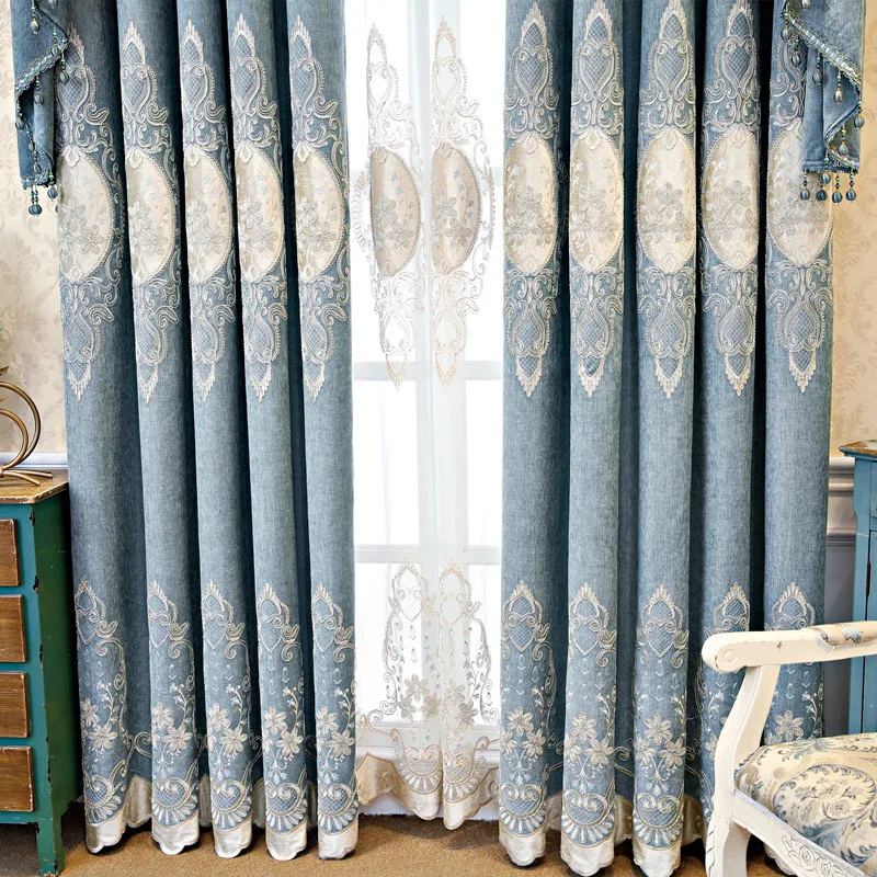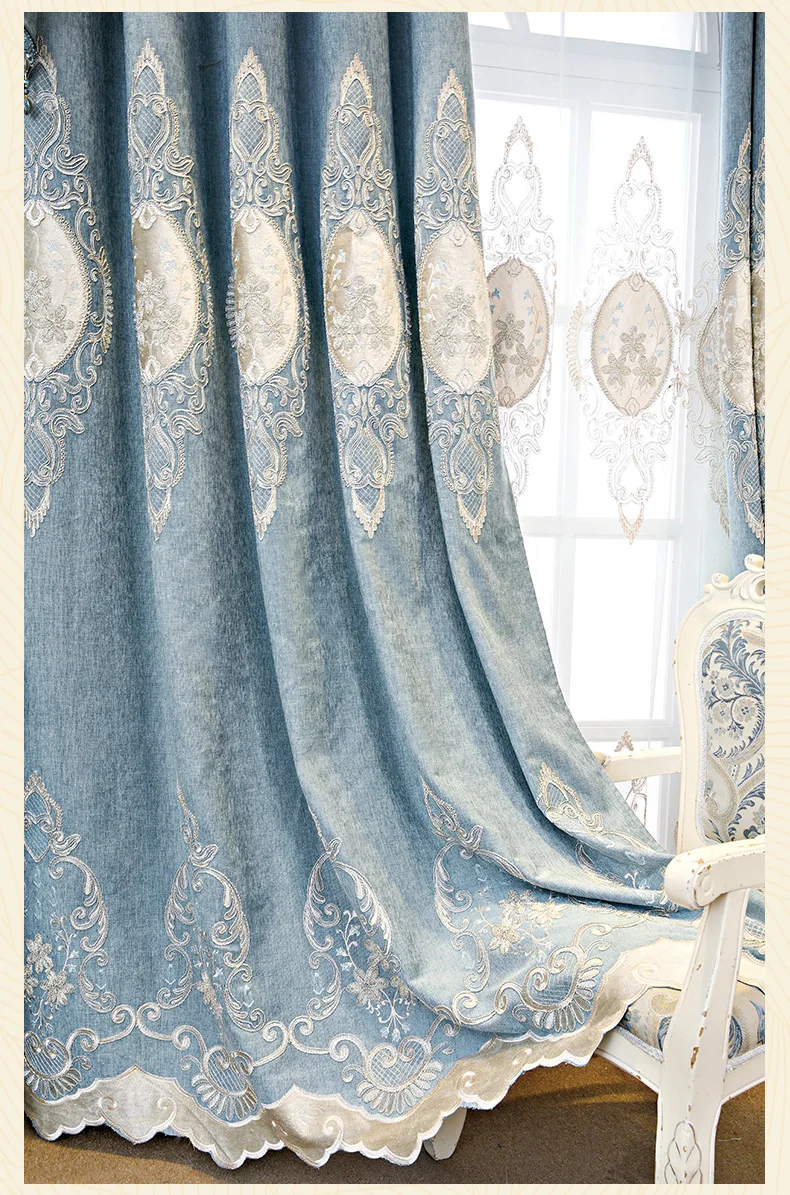 Занавески в европейском стиле для гостиной, спальни, роскошсветильник шенильные занавески с вышивкой, занавески для дверей, окон, синего цвета