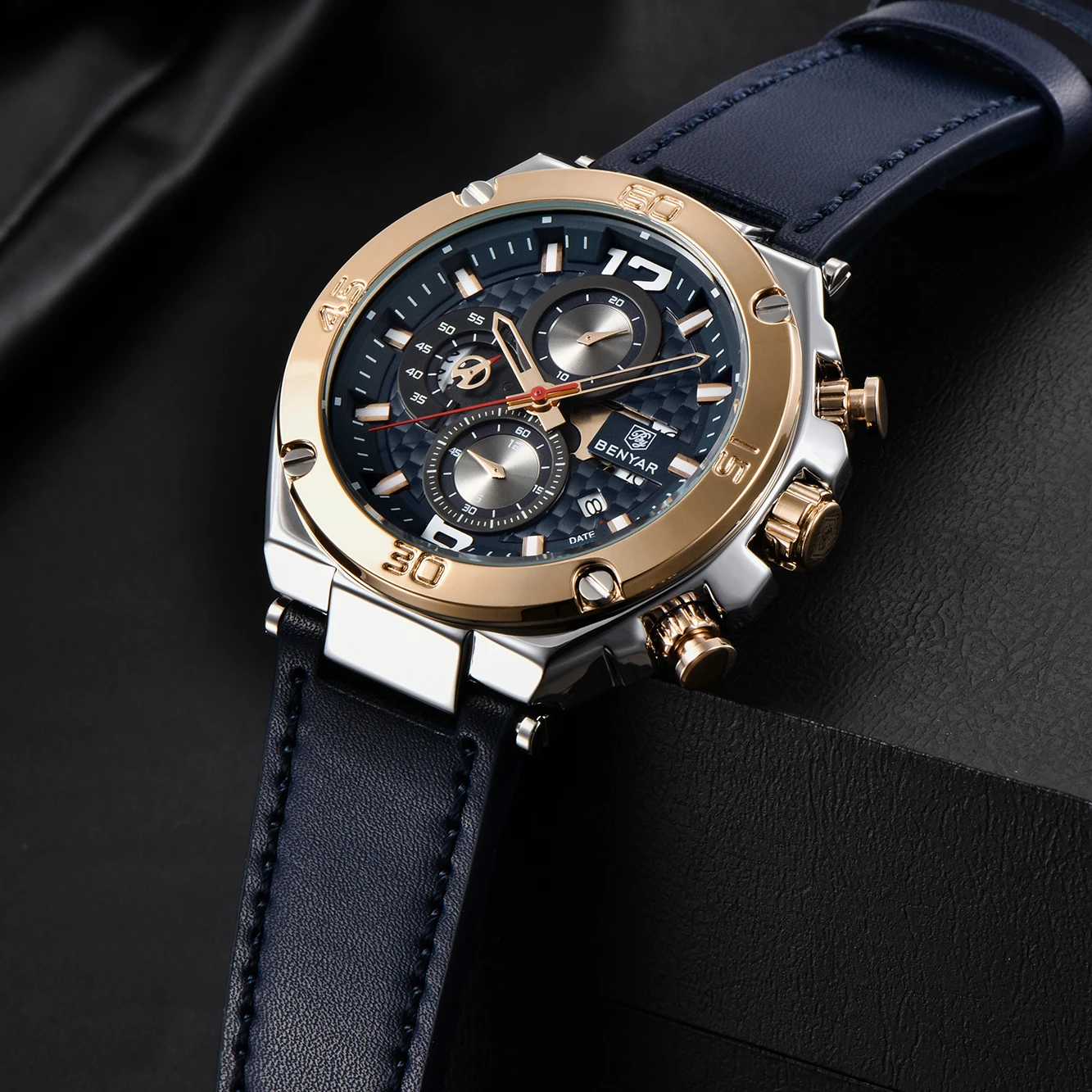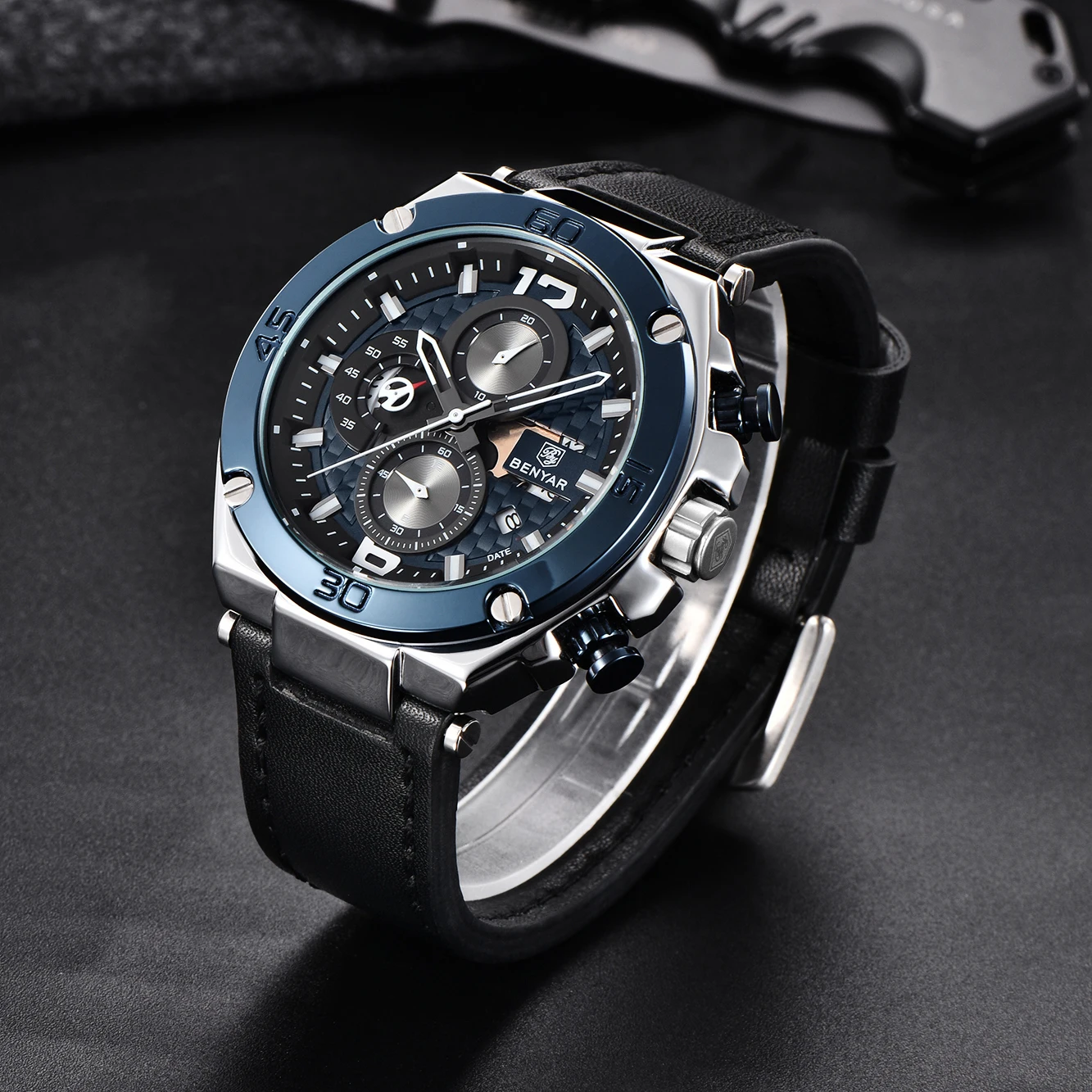 BENYAR Лидирующий бренд большой циферблат дизайн часы с хронографом, спортивные мужские часы в стиле милитари с Водонепроницаемый кварцевые часы Relogio Masculino