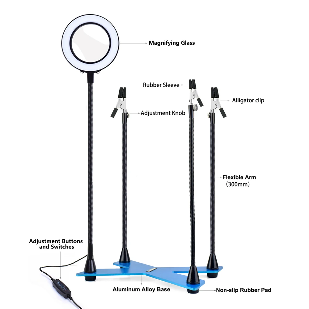 Toolour 3X USB лупа Светодиодная лампа сварки третьей помощи держатель для пайки Staion для ремонта DIY электронная печатная плата