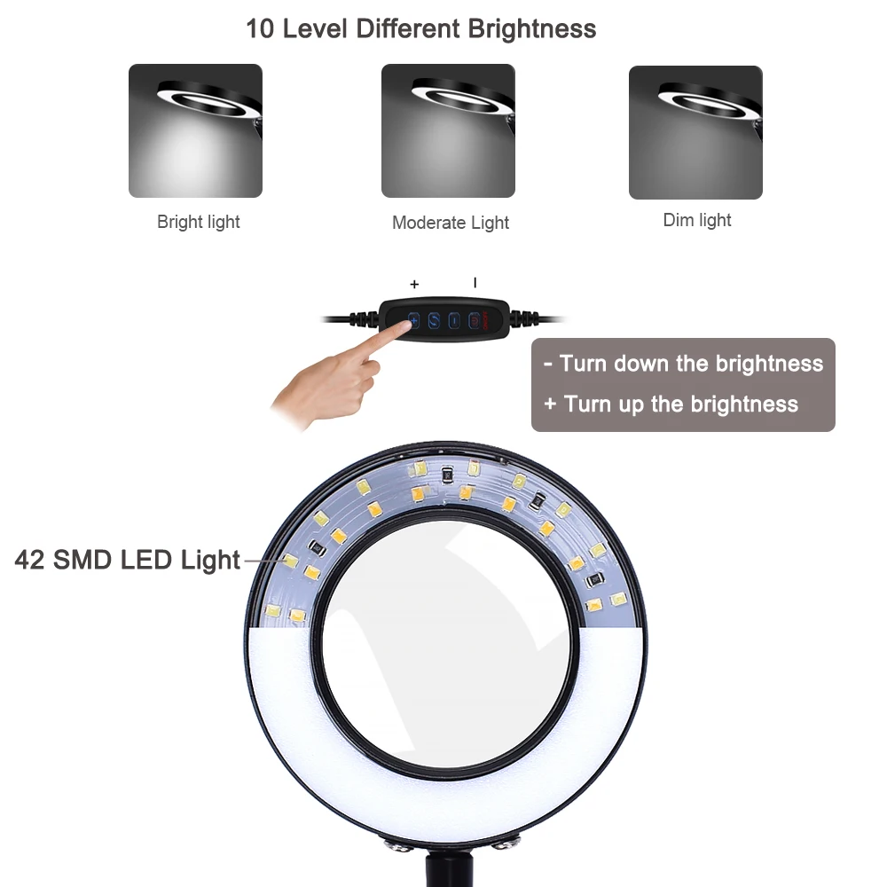 2. Увеличительное стекло со светодиодной подсветкой ---- 3 цвета могут быть заменены, 10 уровней яркости можно регулировать, 3X увеличительное стекло, работает более четко, более эффективно