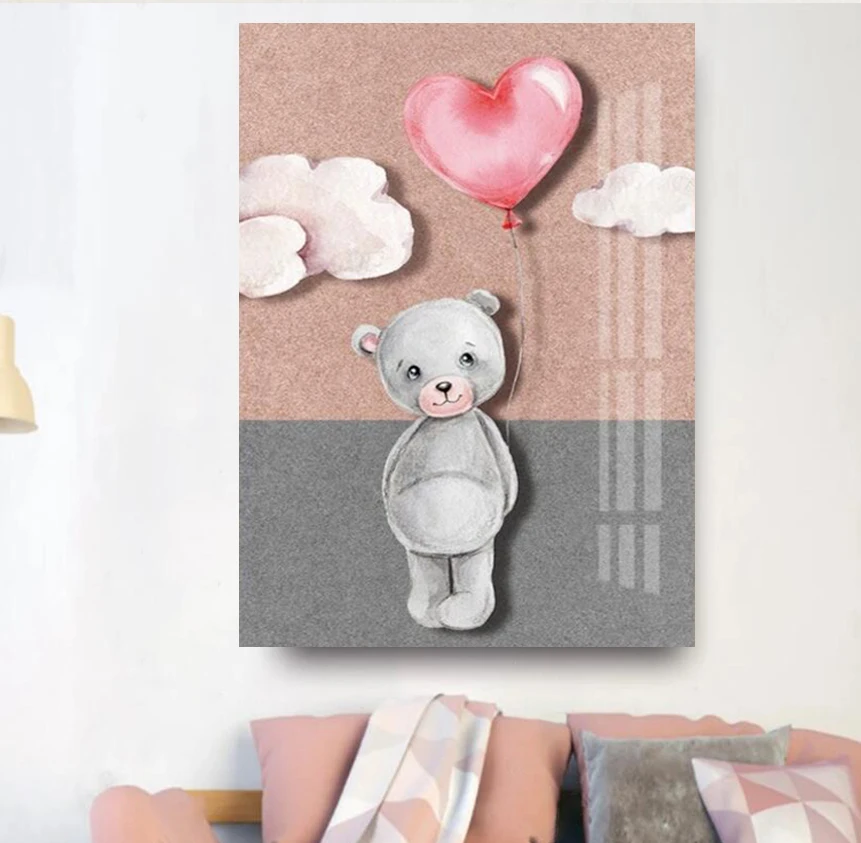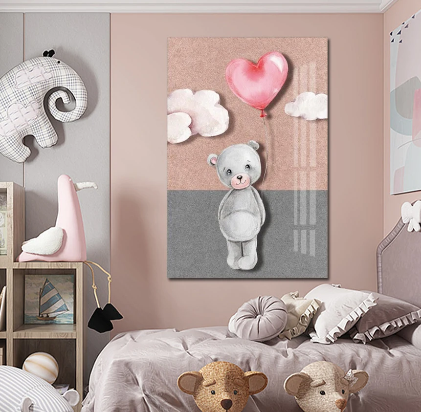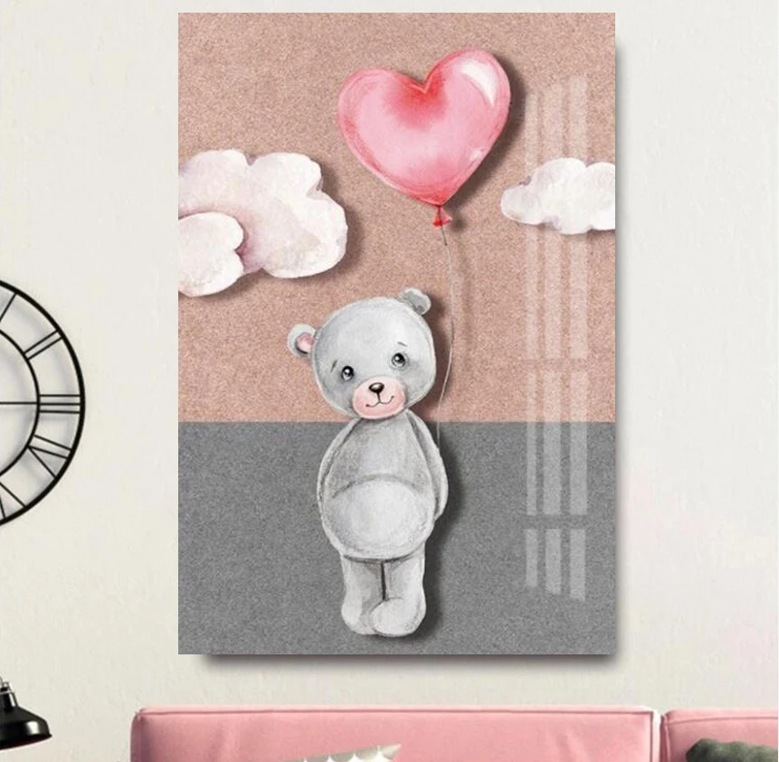 Картина на холсте с изображением медведя из мультфильма баллон розовые скандинавские постеры и принты настенные картины для детской комнаты декор для детской комнаты