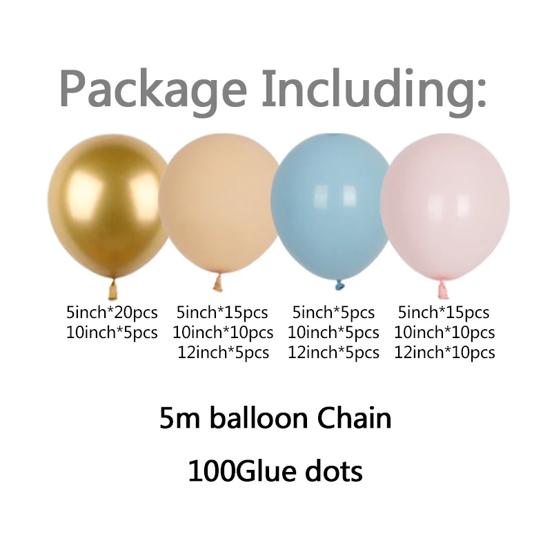 Шары воздушные латексные, голубые, розовые, 118 шт., комплект гирлянды