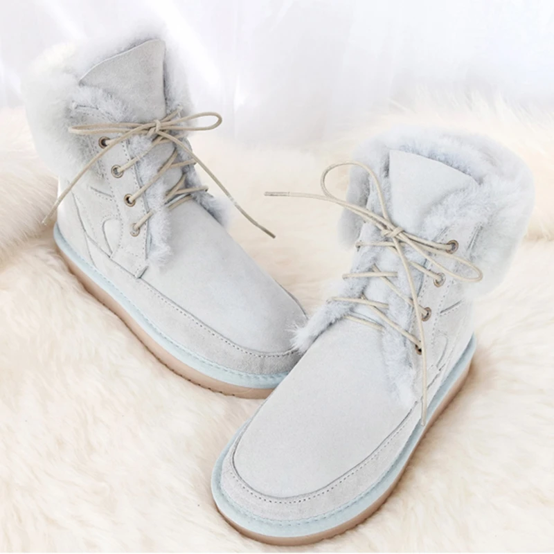 Австралийские сапоги из овчины, зимние сапоги из натуральной кожи на шнуровке, женские сапоги с шерстяным мехом и овечьим мехом, теплая зимняя обувь для отдыха на плоской подошве, сапоги