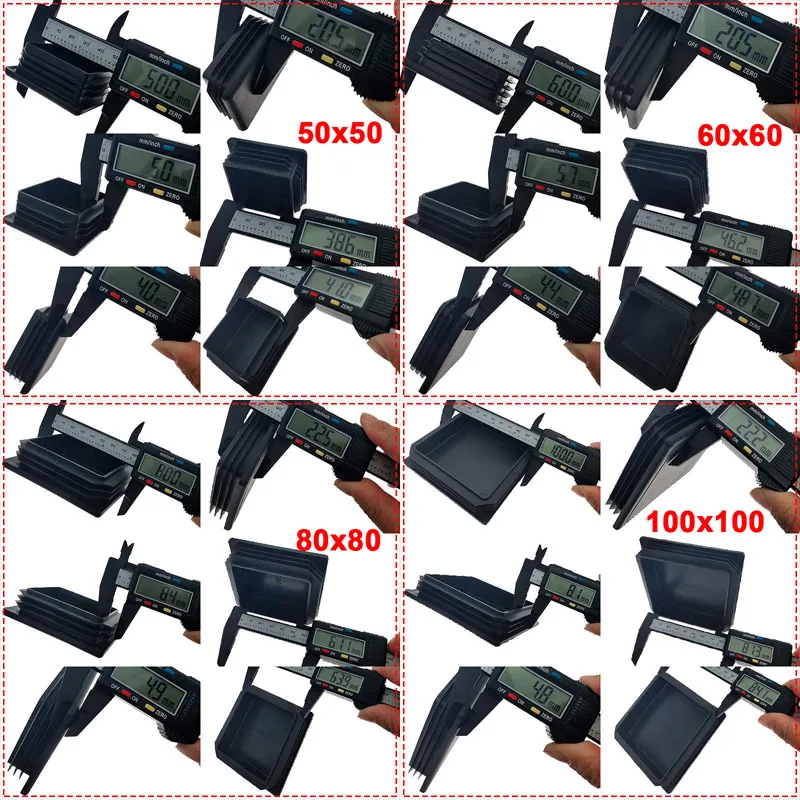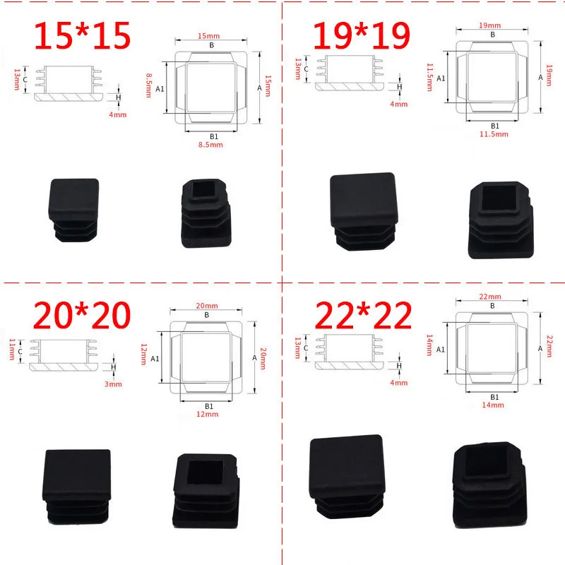 Черная пластиковая стальная квадратная заглушка для труб, мебельная накладка, пластиковая квадратная заглушка для ножек, противоскользящая протекторная трубка, заглушка