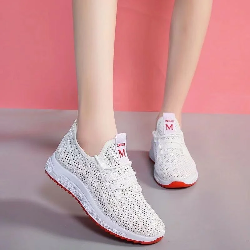 Женские кроссовки из дышащего сетчатого материала, Белые Повседневные кроссовки для прогулок, спортивная обувь для мам, обувь для ухода за ребенком, лето 2021