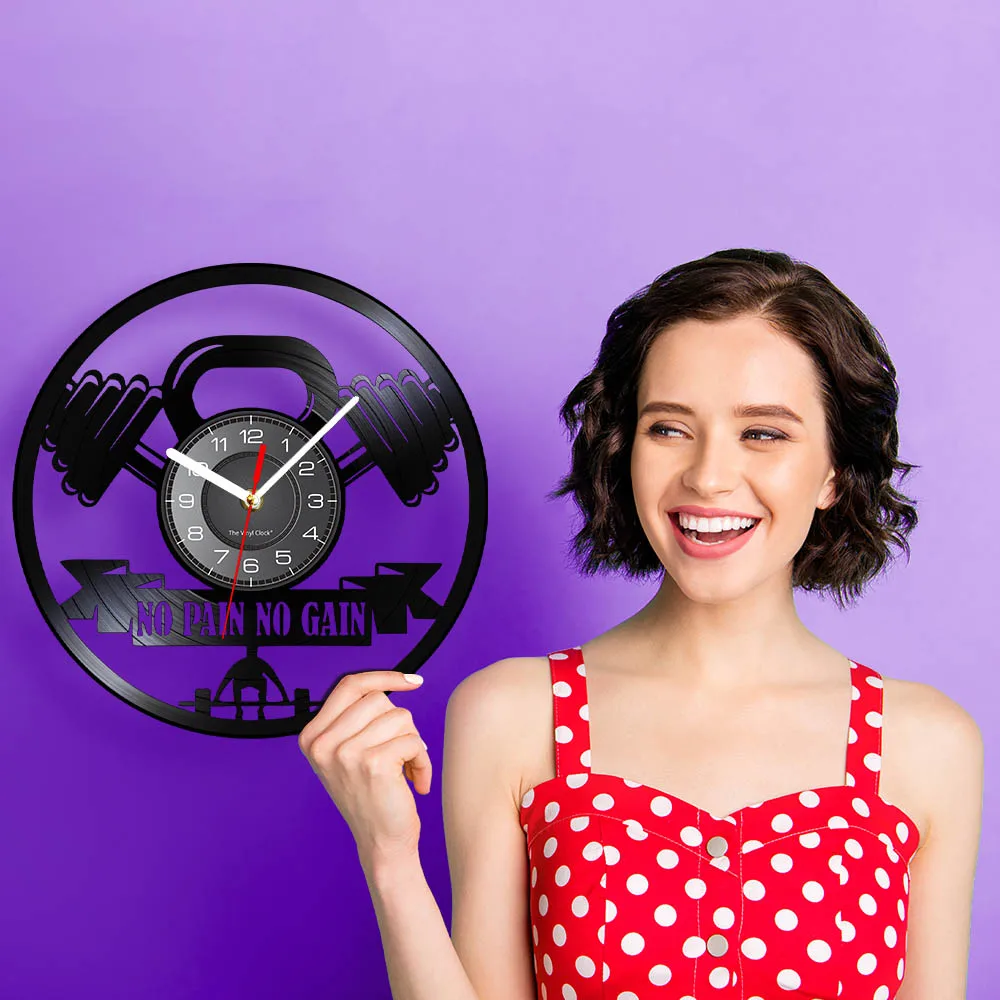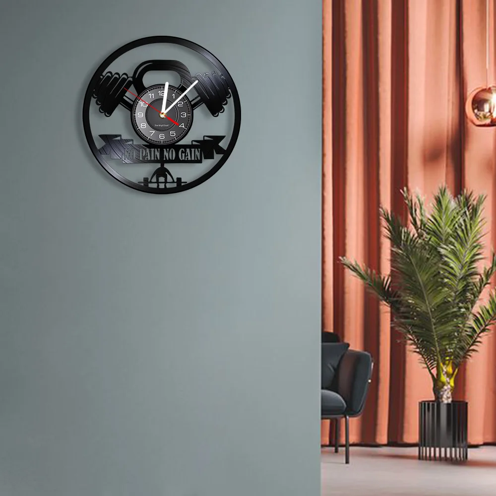 Бесшумные настенные часы, дома, для тренажерного зала, фитнеса, виниловая пластина, для занятий бодибилдингом