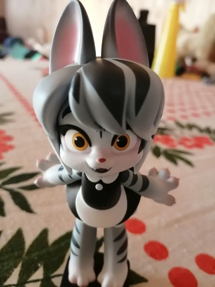 фигурка очень качественно сделана, матовая поверхность, милая внешность, великолепная покраска, обалденный запах нового пластика, кошечка стоит своих денег