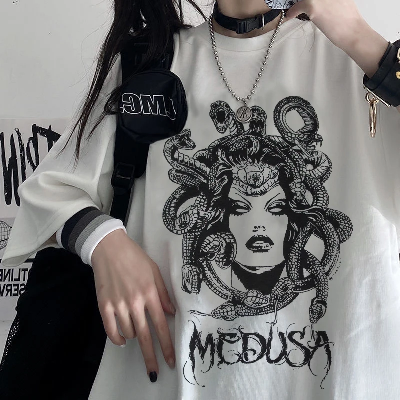 Женская футболка в стиле Харадзюку, свободная Готическая футболка в...